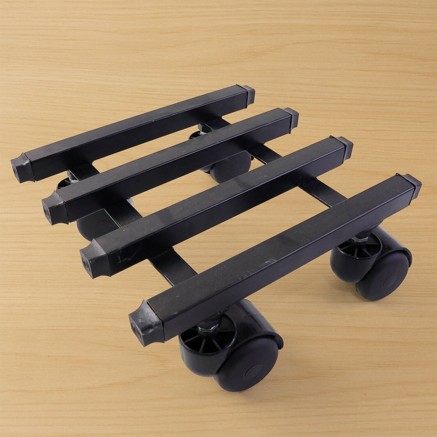 Made from durable metal with a strong black finish, it provides excellent stability and long-lasting performance. The smooth-rolling wheels ensure easy movement on tiles, wood, marble, and other flat surfaces while protecting floors from scratches.