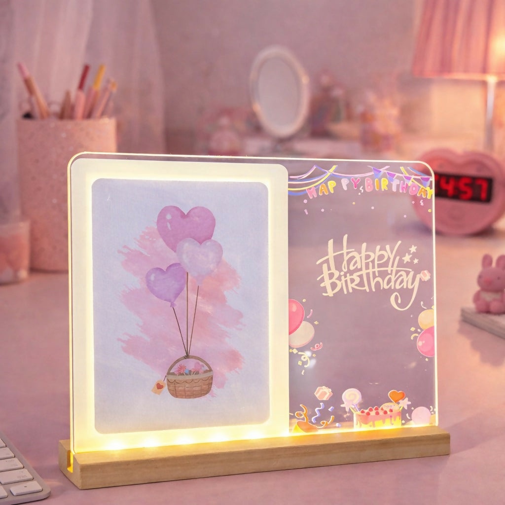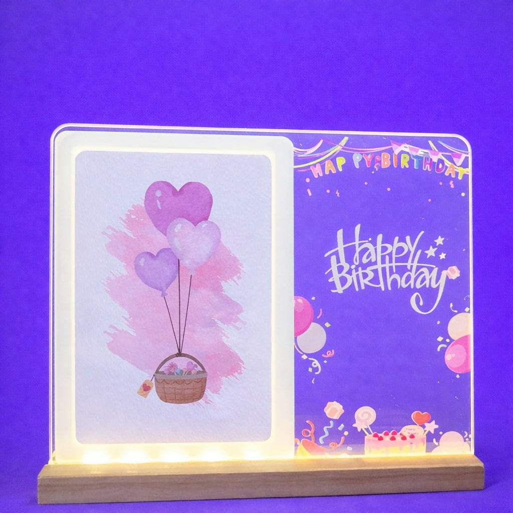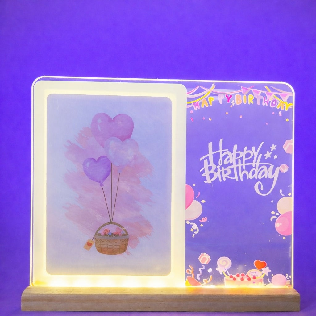 Happy Birthday LED Acrylic Message Lamp with Wooden Base | Decorative Table Light