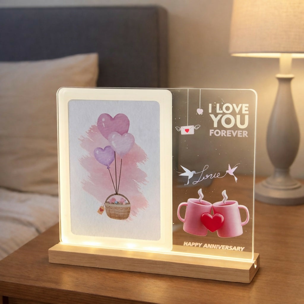 Add elegance and warmth to your décor with this LED Acrylic Message Lamp. Featuring a clear acrylic panel with printed design and a soft warm LED glow, this lamp blends modern style with emotional appeal.