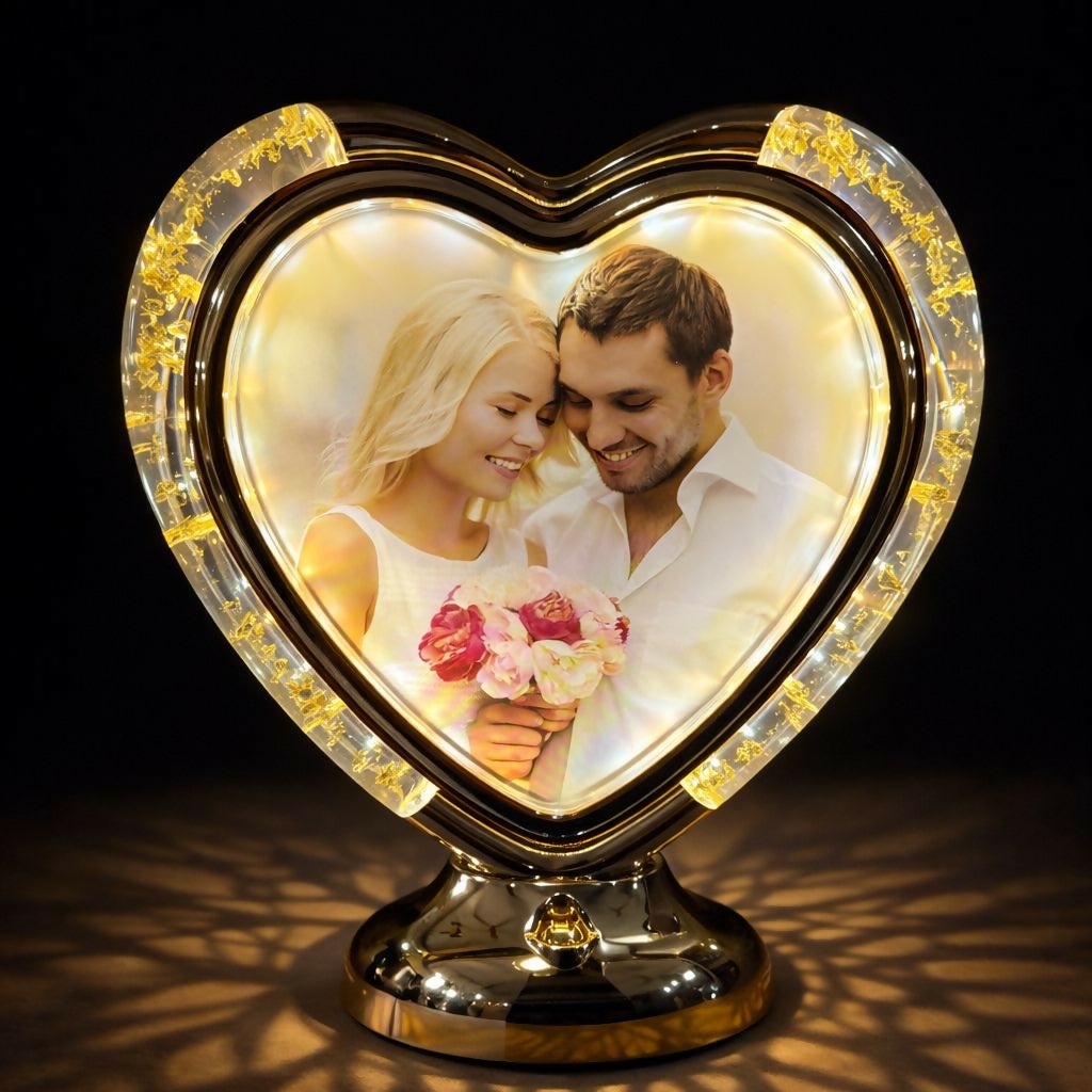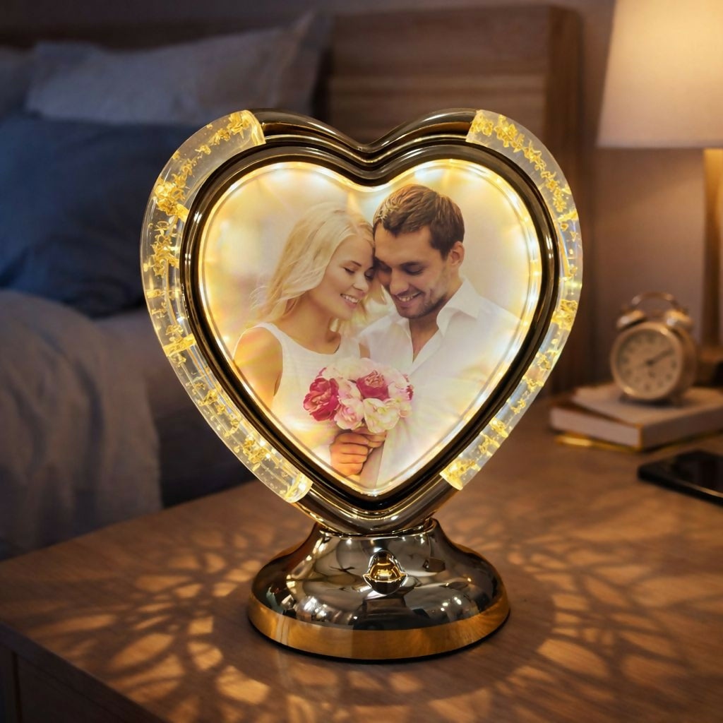 The elegant acrylic frame paired with a stable metallic base makes it a perfect addition to bedrooms, side tables, dressing tables, or living room décor. Whether used as a decorative accent or a thoughtful gift, this lamp creates an inviting and emotional atmosphere.