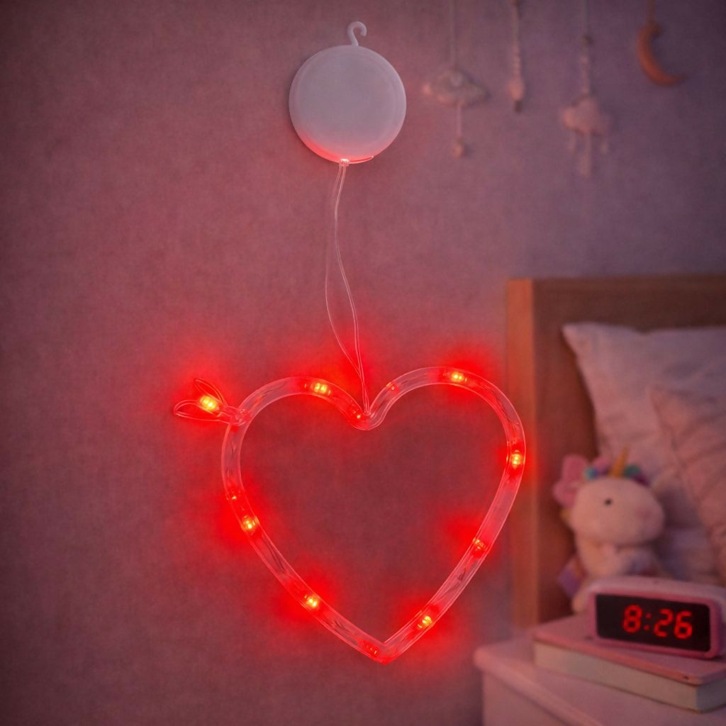 Add a charming glow to your space with this heart-shaped LED decorative light. Designed to create a cozy and romantic atmosphere, this wall light is perfect for bedrooms, living rooms, and celebration decor. The soft LED glow enhances interiors without overpowering the surroundings.