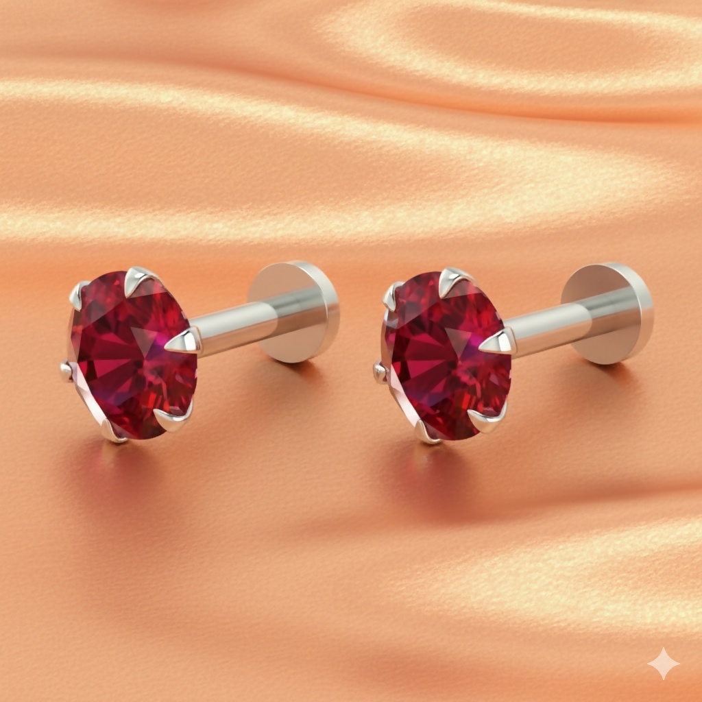 Elevate your piercing game with this elegant Silver Plated Ruby Red Crystal Labret. Designed for both style and comfort, this versatile piece features a vibrant, multi-faceted red crystal that catches the light from every angle.