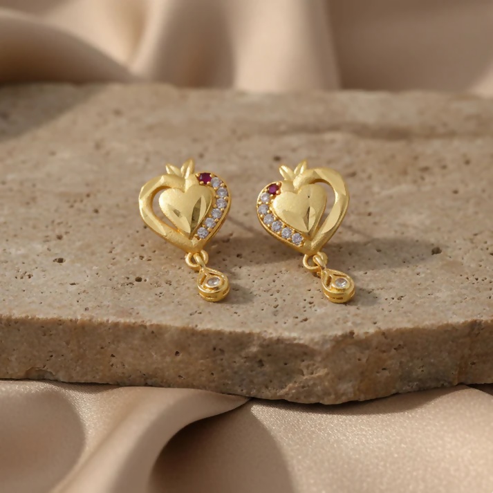 Heart Shaped Gold Finish Earrings With Crystal Border And Delicate Hanging Drop