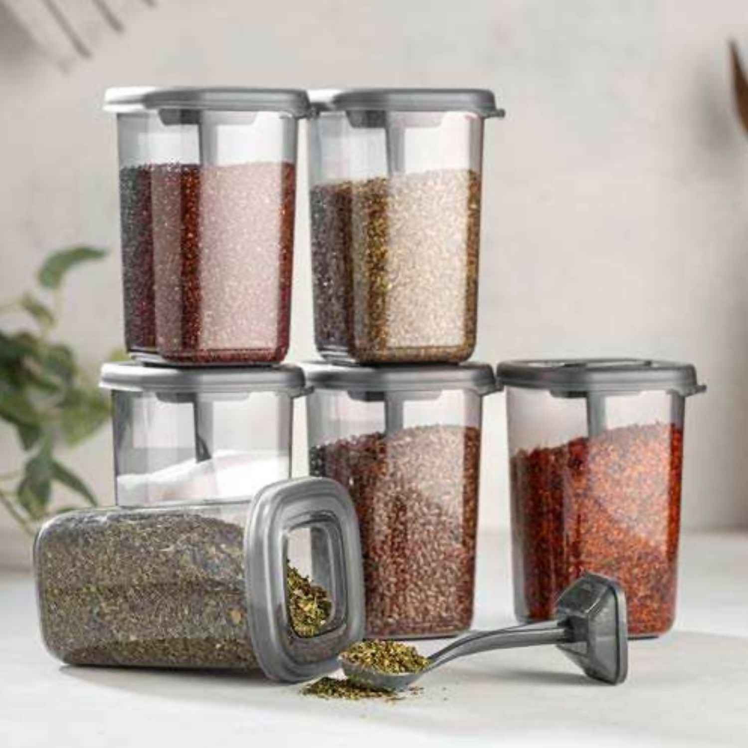 Airtight spoony containers keep spices and dry items fresh for longer