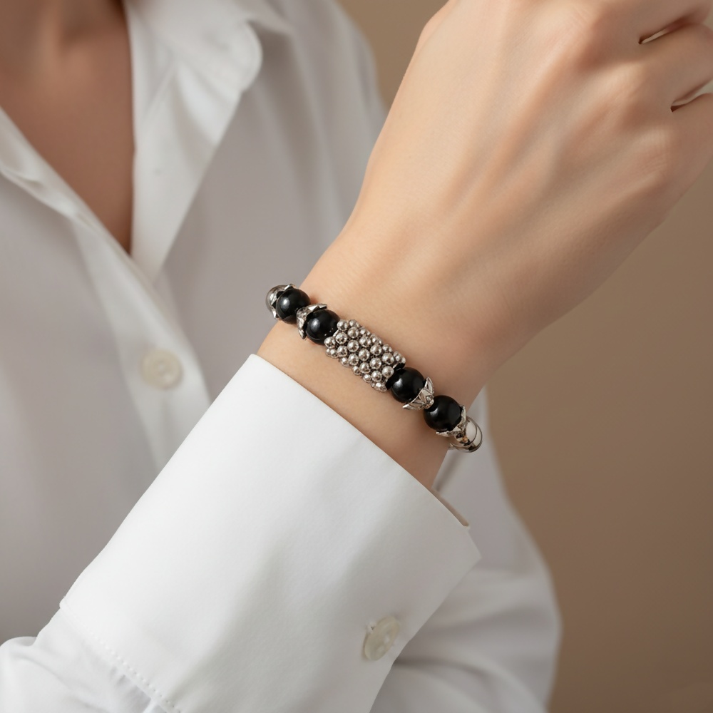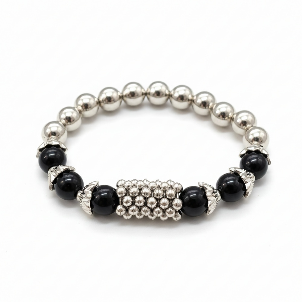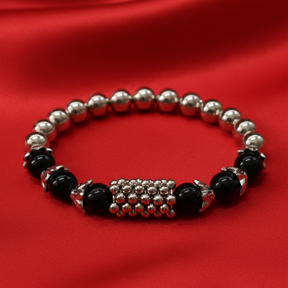 Classic Multi Beads Bracelet with Designer Silver Detailing