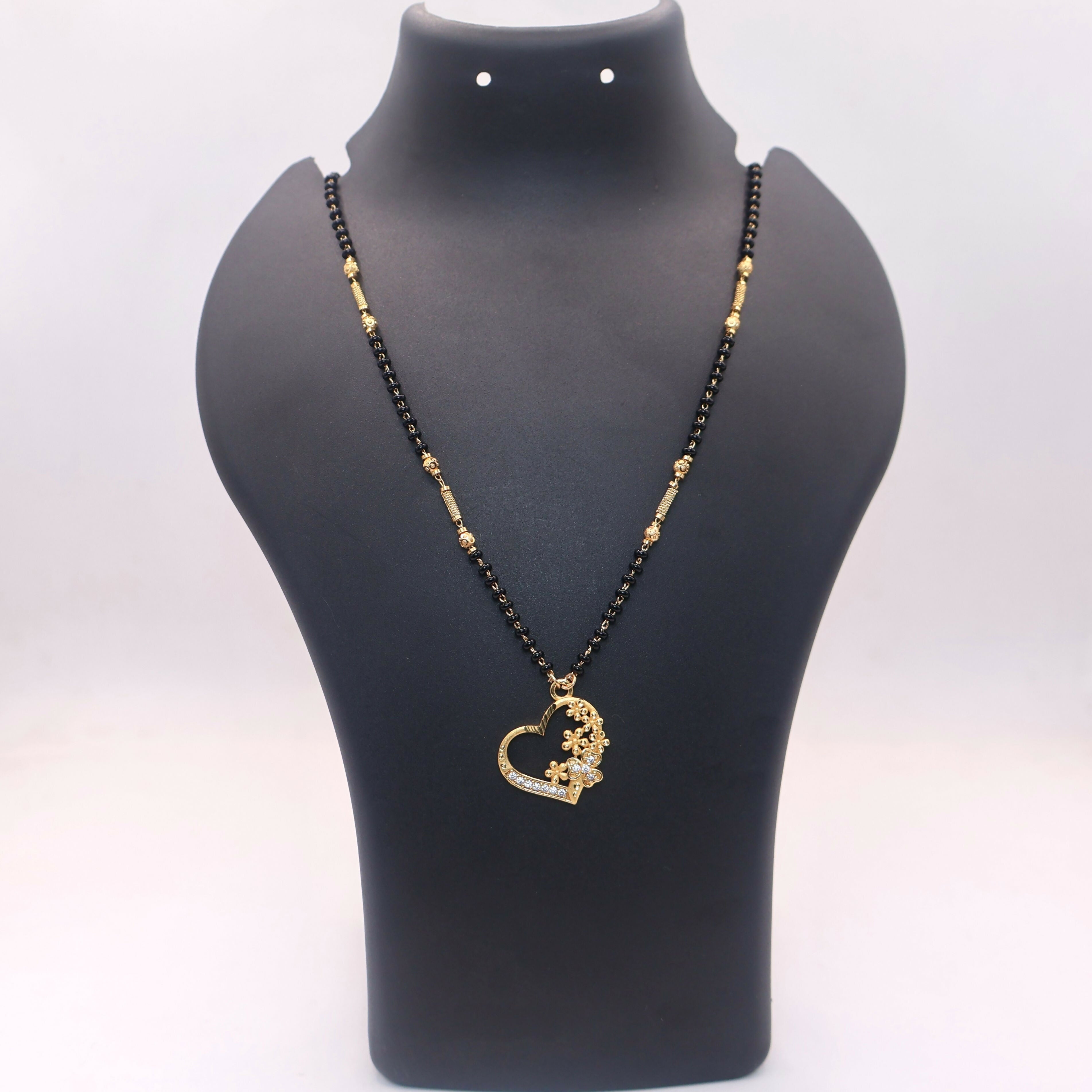 Gold Heart Floral Mangal sutra Necklace with AD Accents For women