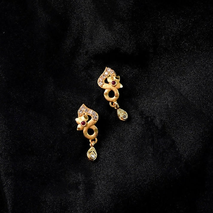 These elegant earrings are designed to enhance any look with their refined and timeless appeal. Featuring a premium gold finish and beautifully detailed stones, they add a touch of sophistication to both everyday outfits and special occasions. Their lightweight build ensures comfortable wear throughout the day, while the intricate craftsmanship brings out a graceful and luxurious charm. Whether for casual styling or festive events, these earrings effortlessly elevate your overall appearance. A perfect blend of style and elegance, they make a versatile accessory every jewelry collection deserves.
