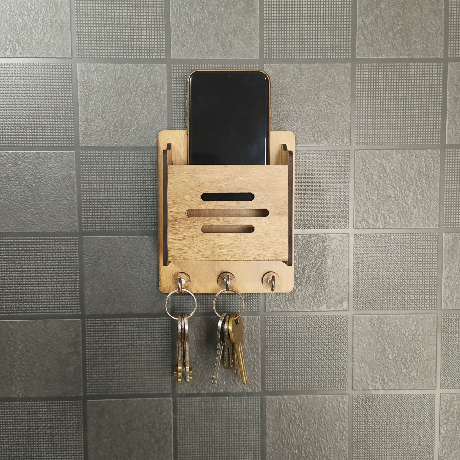 Wooden Key Holder with Mobile Stand | Minimal Home Entryway Décor