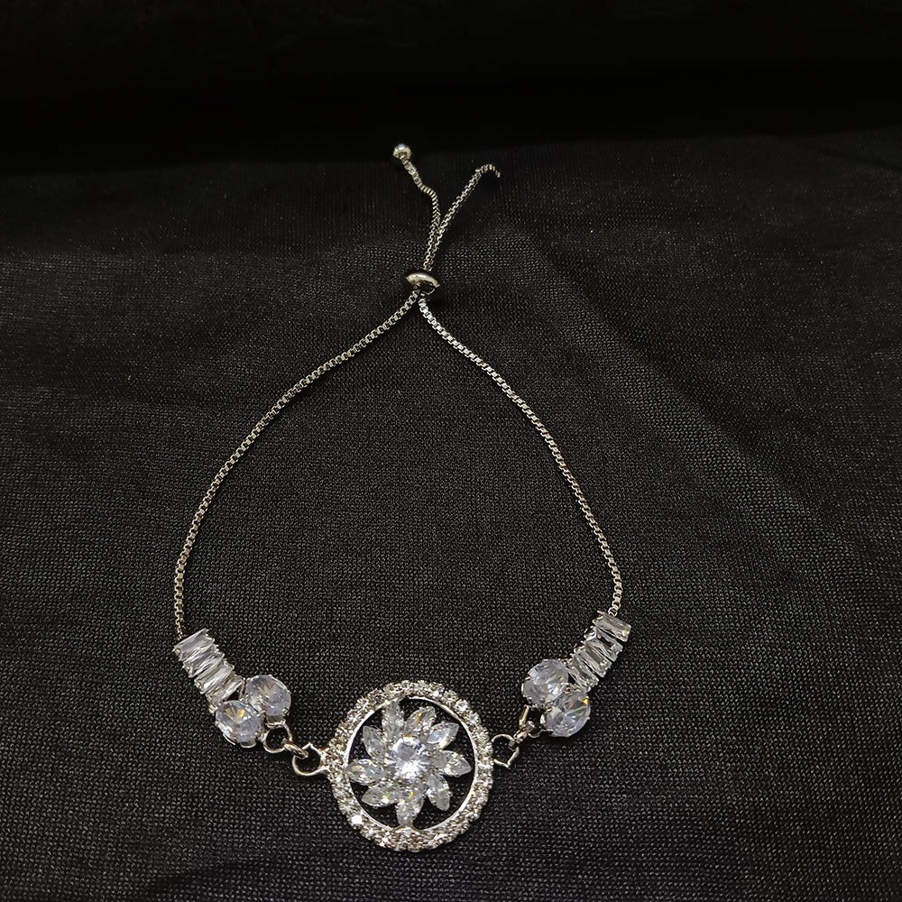 Nature’s elegance meets timeless sparkle. Our Graceful AD Floral Bracelet features meticulously handset American Diamonds arranged in a delicate botanical motif. Designed for the woman who loves a touch of romance, this piece mimics the fire and brilliance of real diamonds.