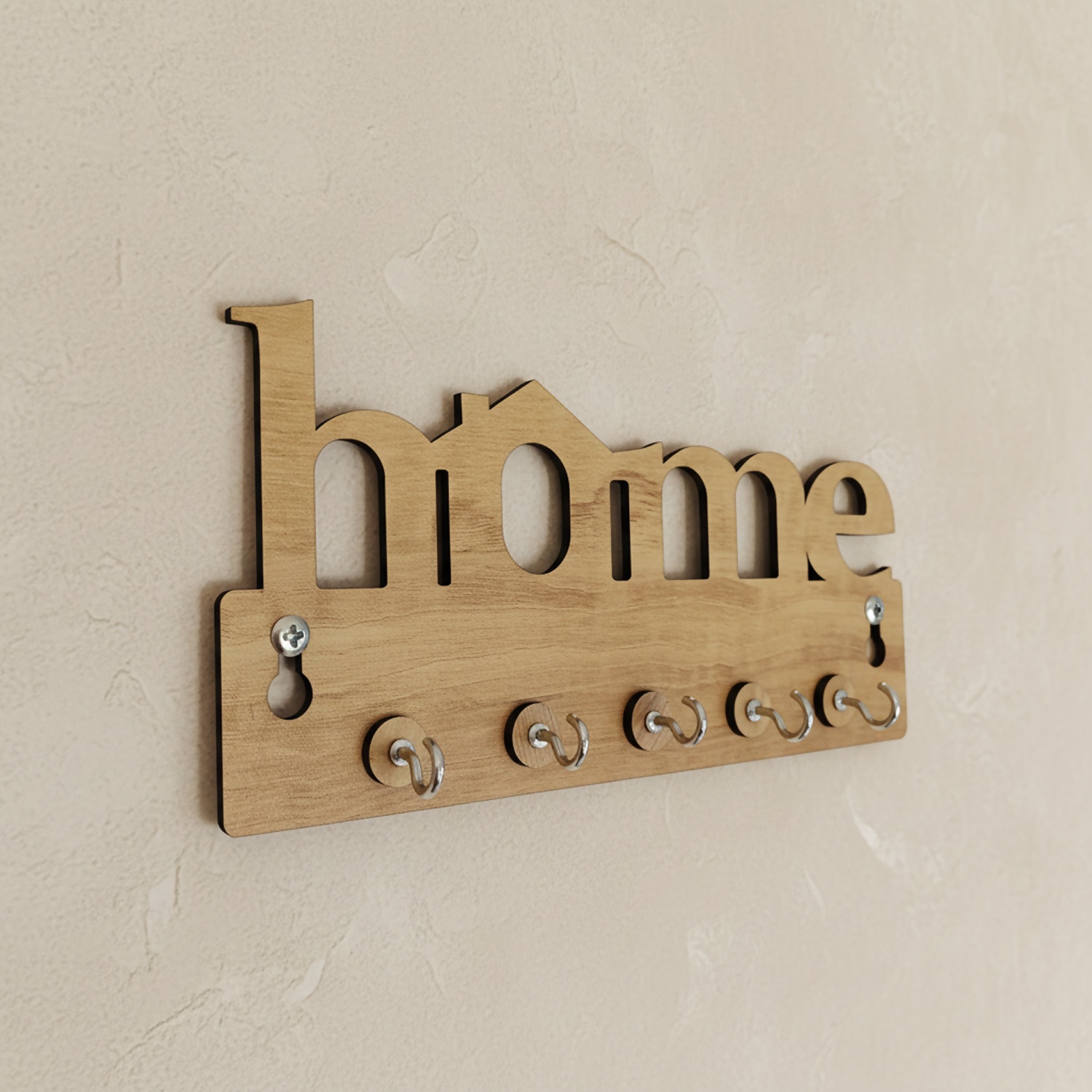 Keep your keys organized and your home looking stylish with this Wooden Key Holder for Wall with “Home” design. Crafted from premium MDF wood, this decorative key holder combines functionality with modern home décor aesthetics.