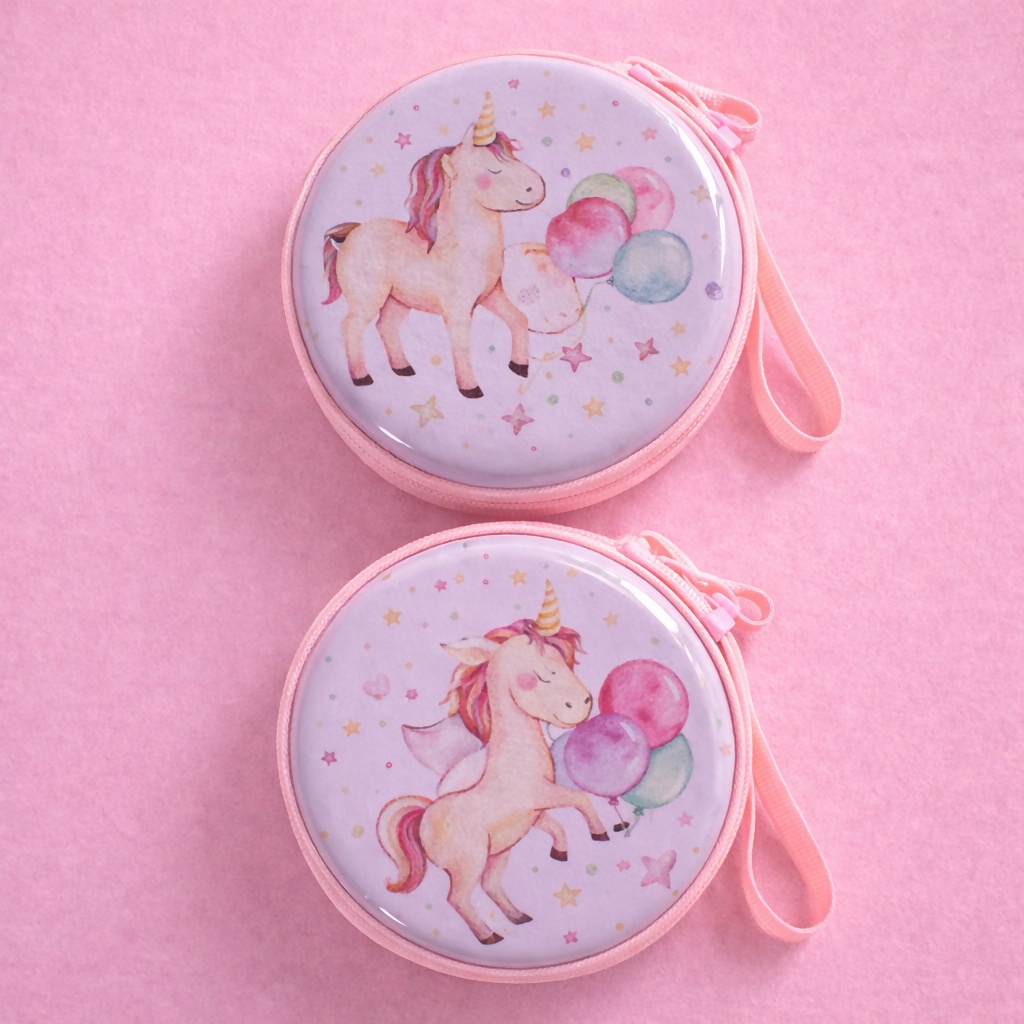 Unicorn Print Round Coin Pouch with Zipper & Wrist Strap for Kids and Gifting(DESIGN MAY VARY)