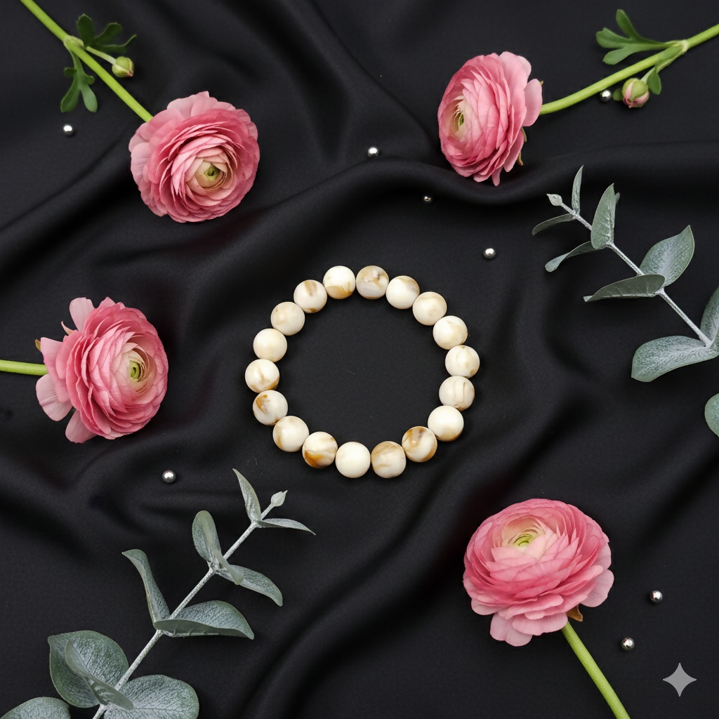 Add a touch of elegance to your everyday look with this beautifully crafted beaded bracelet. Designed with smooth round beads in a soothing white and beige marble finish, this bracelet offers a classy and minimal appeal.