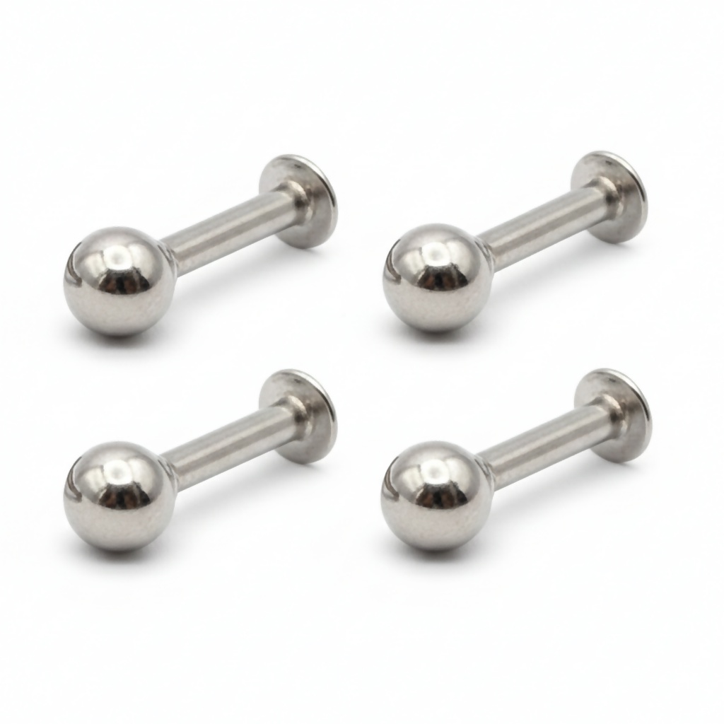 Elevate your piercing collection with this set of four premium-quality labret studs. Designed for both comfort and style, these studs feature a sleek high-polish finish and a flat-back design, making them perfect for all-day wear—even while sleeping.