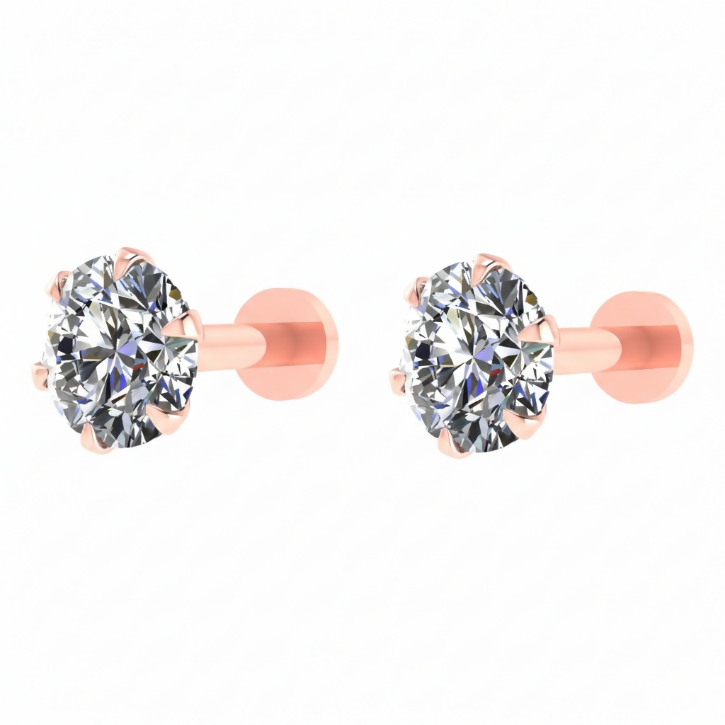 Rose Gold plated Labret Nosepin AD Piercing Stud for women and girls Combo Pack of 2