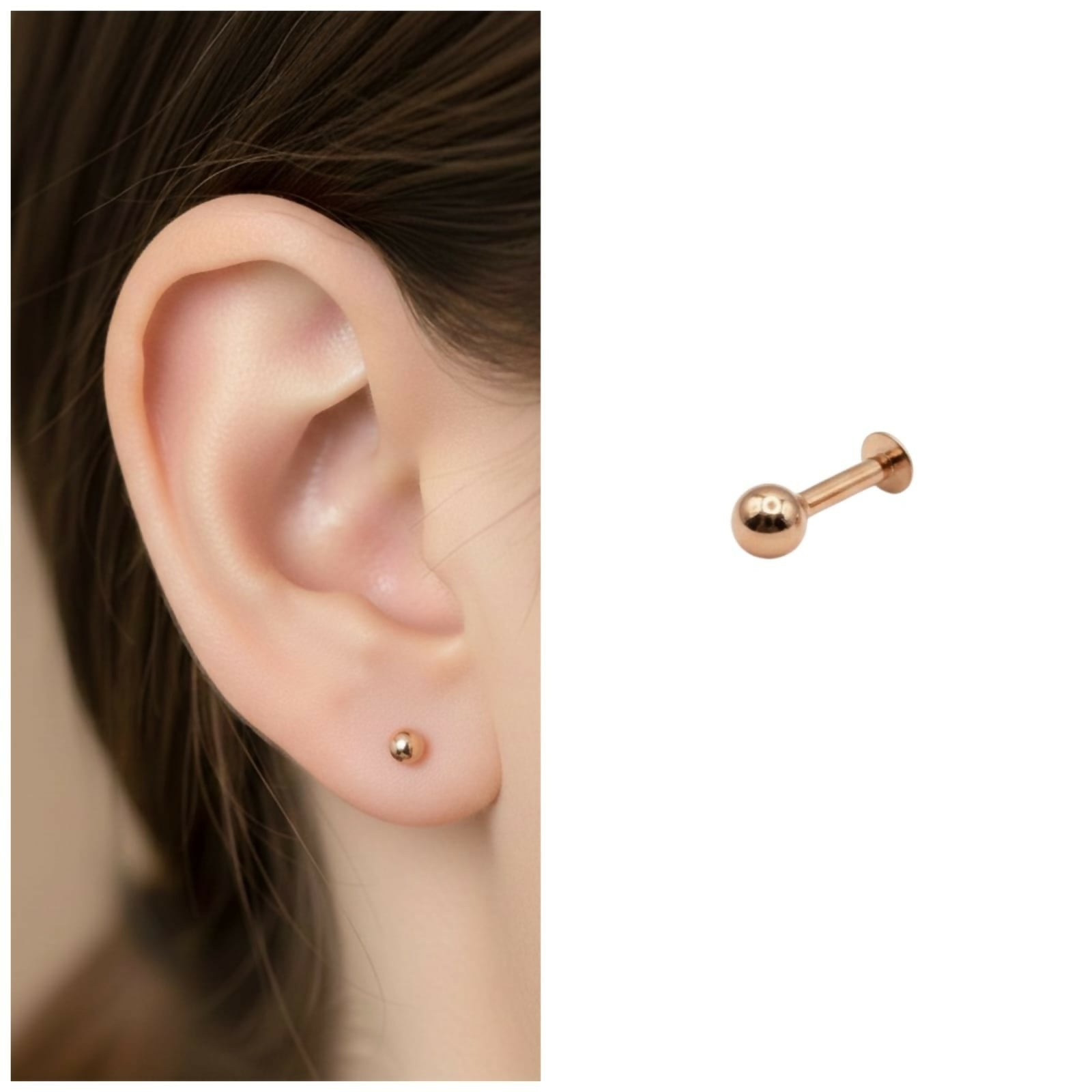 Elevate your jewelry collection with our Rose Gold Flat Back Labret Stud. Designed for both style and maximum comfort, this versatile piece is a "must-have" for anyone seeking a seamless, everyday look without the poke of traditional earring backs.