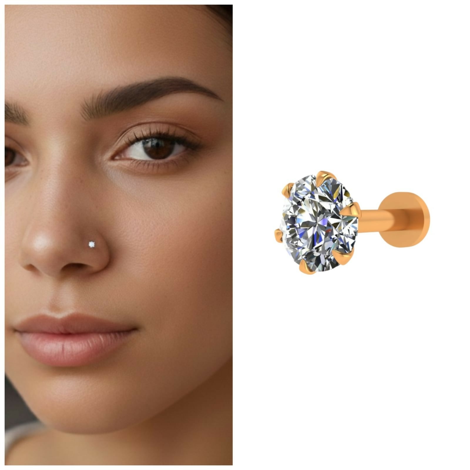 Secure Fit: Features a comfortable flat-back (labret style) post, ensuring it stays securely in place while remaining flush against the skin.