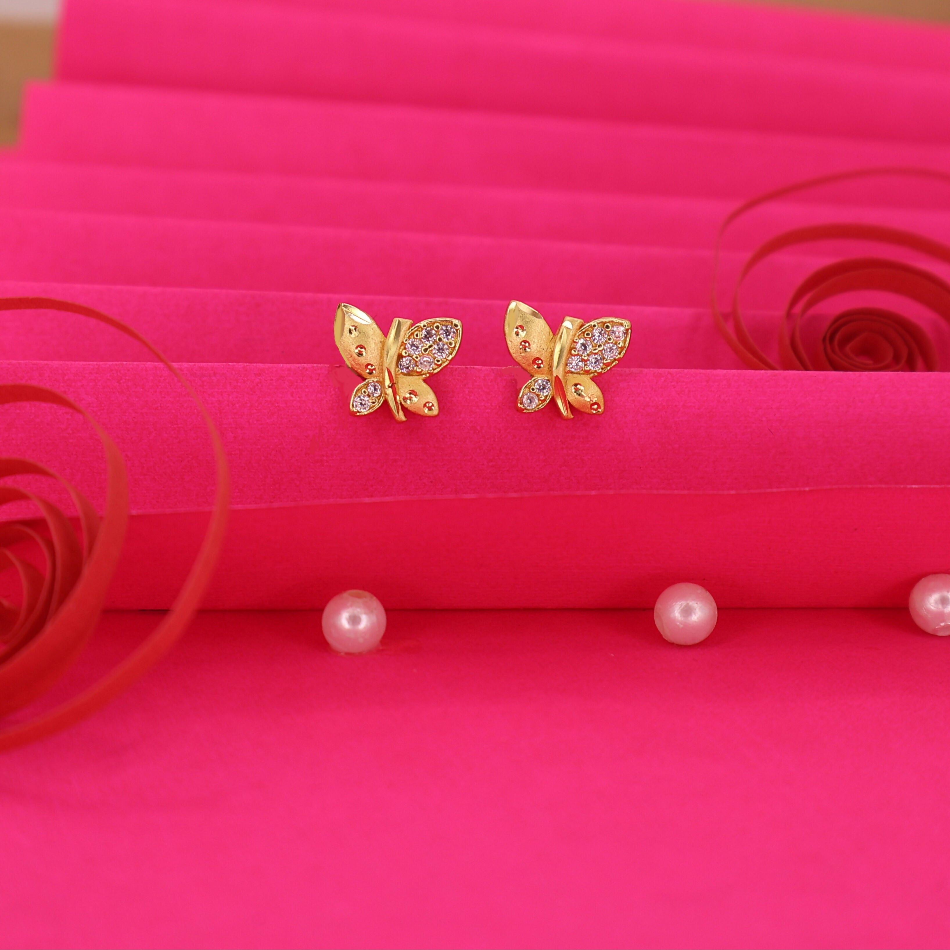 Gold Plated Matte Butterfly earing Studs with AD for women and girls