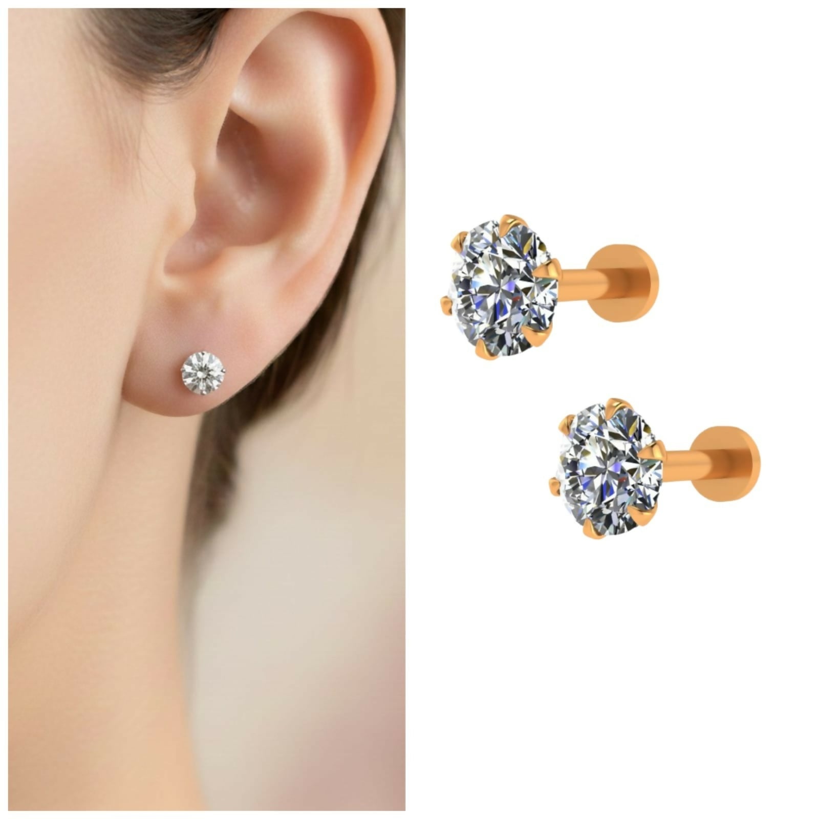 The classic round-cut design offers a sophisticated sparkle that transitions seamlessly from office wear to evening events. These earrings feature a flat-back (labret style) closure, ensuring maximum comfort for all-day wear and making them an ideal choice for lobe, helix, or cartilage piercings.