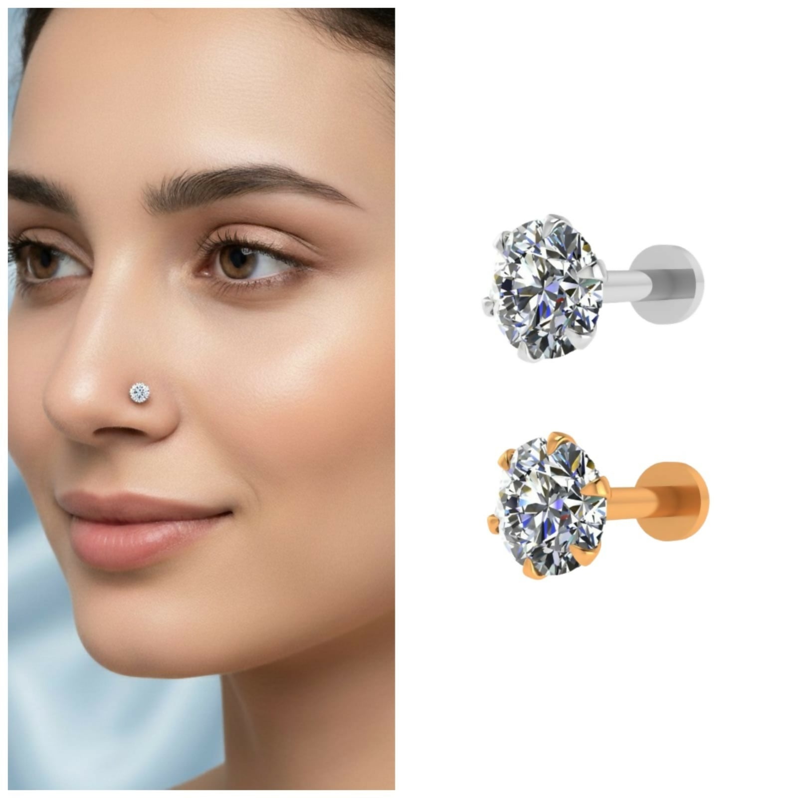 Gold and silver plated Nosepin Stud Labret Piercing for women and girls Combo Pack of 2