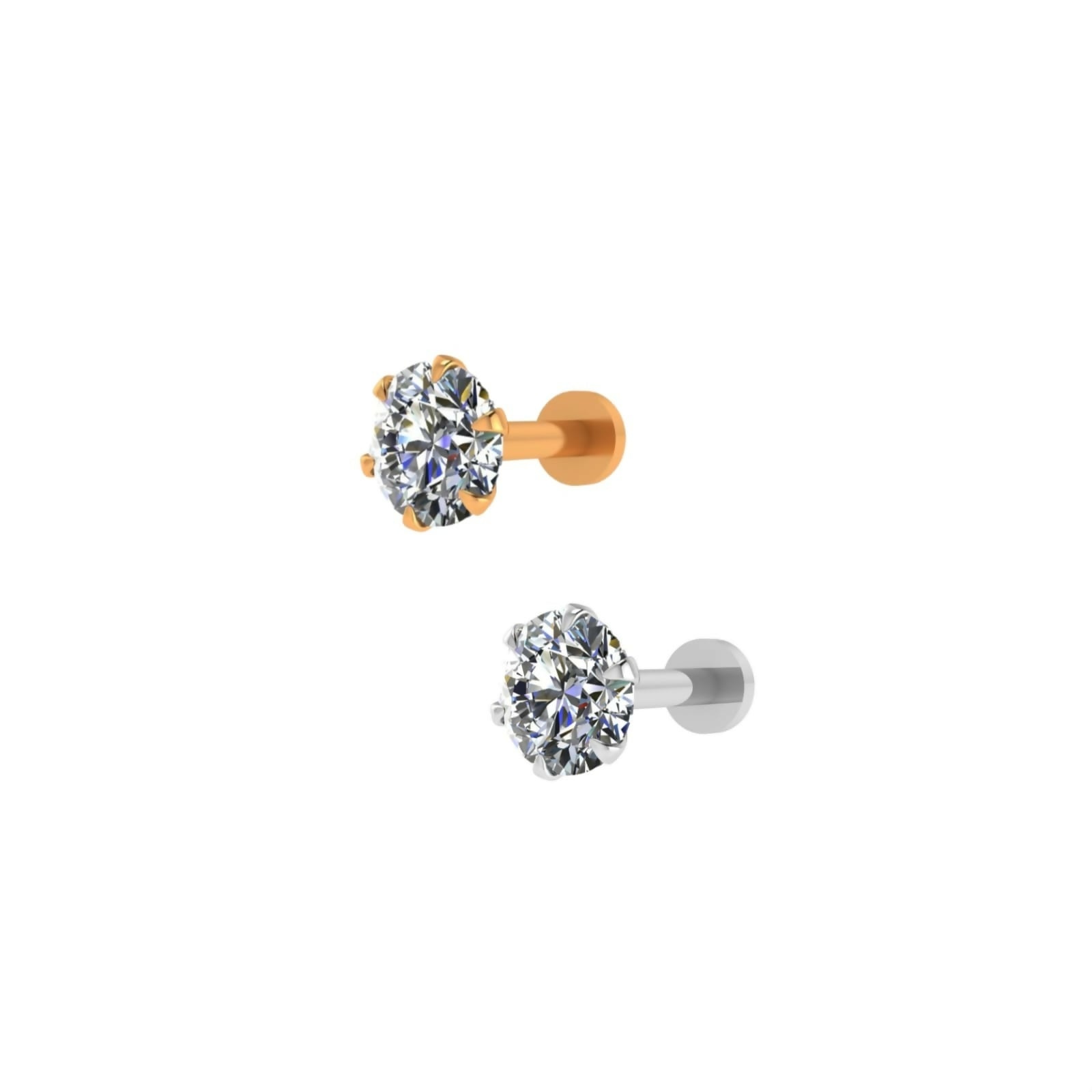 Designed as a flat-back labret, it provides a smooth, flush fit against the skin, making it ideal for nose, tragus, or cartilage piercings. Whether you prefer the cool brilliance of white gold or the warm glow of yellow gold, this stud is the perfect minimalist statement.