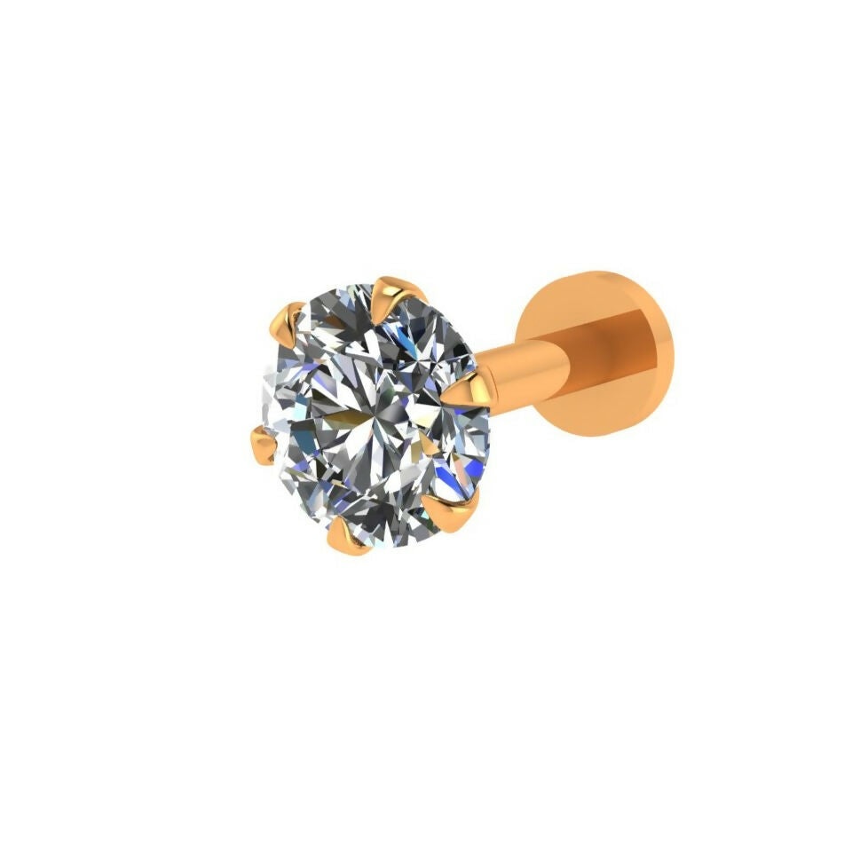 Add timeless elegance to your look with this classic diamond nose pin, designed for everyday luxury and special occasions. Featuring a brilliant round-cut diamond set securely in a gold-finish prong setting, this nose stud offers exceptional sparkle with a minimalist appeal. Its compact size makes it perfect for daily wear, office use, festive styling, or bridal looks.