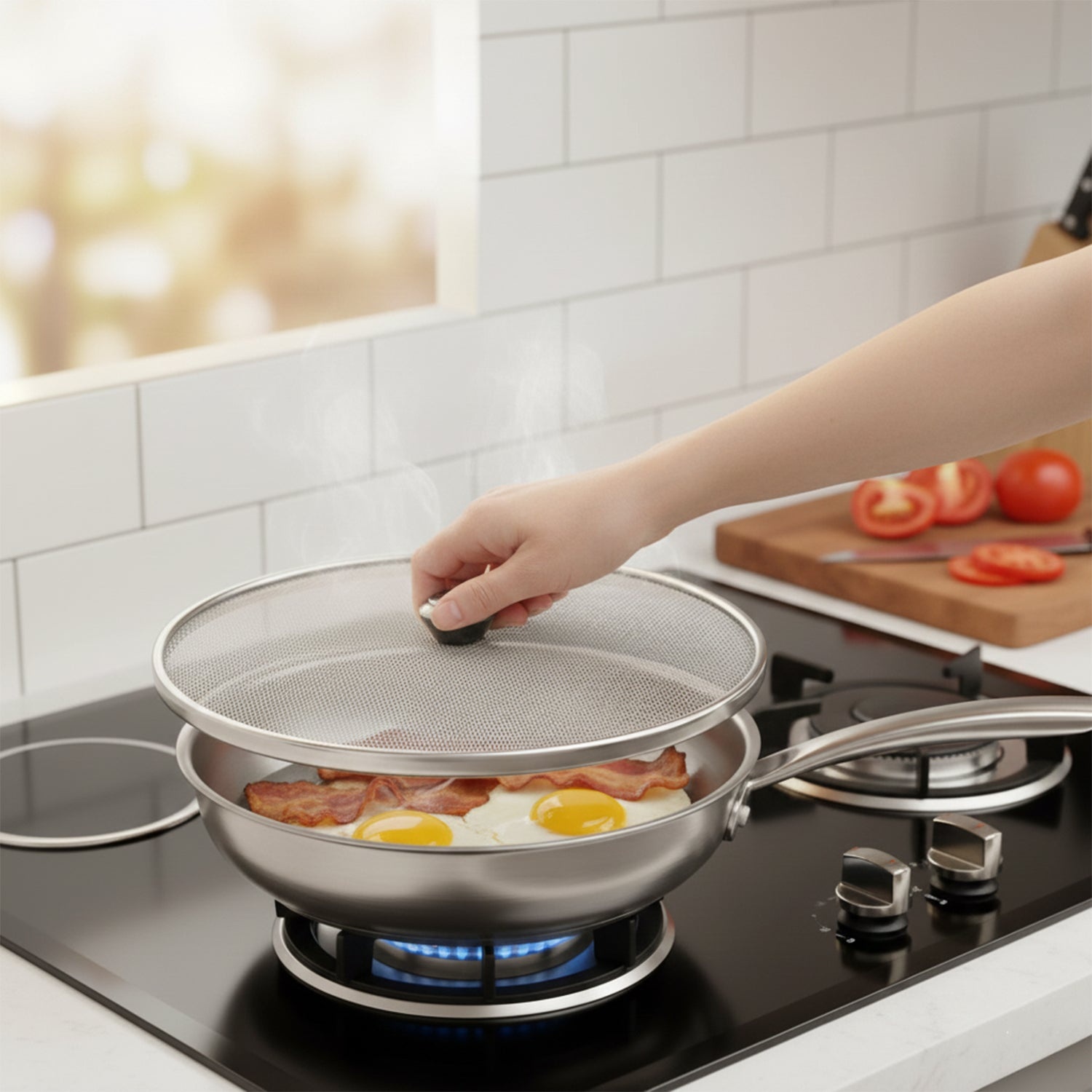 Helps prevent oil splatter during frying and shallow cooking
