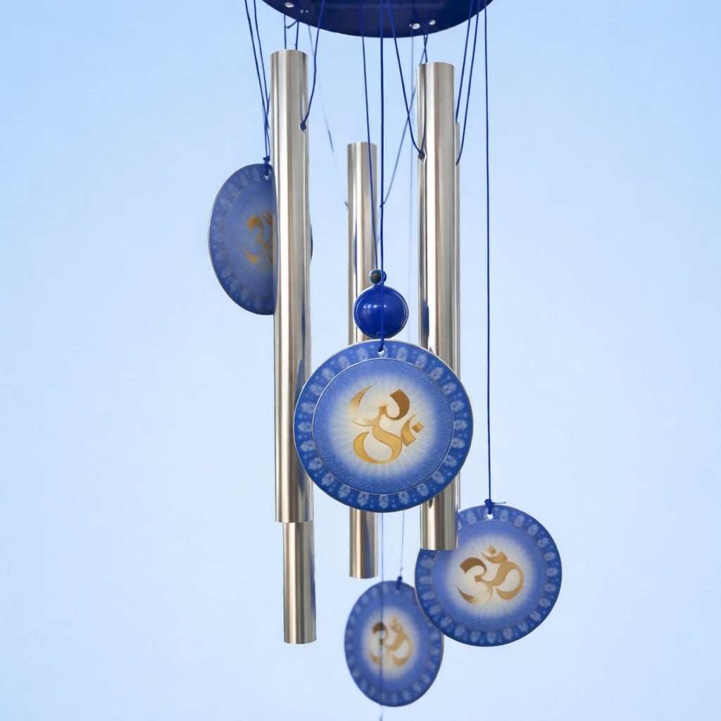 Create a calm and peaceful atmosphere in your home with this beautifully designed Om symbol wind chime. Featuring smooth metallic chime tubes and decorative Om discs, it produces a gentle, soothing sound when moved by the breeze, helping promote relaxation and positive energy.
