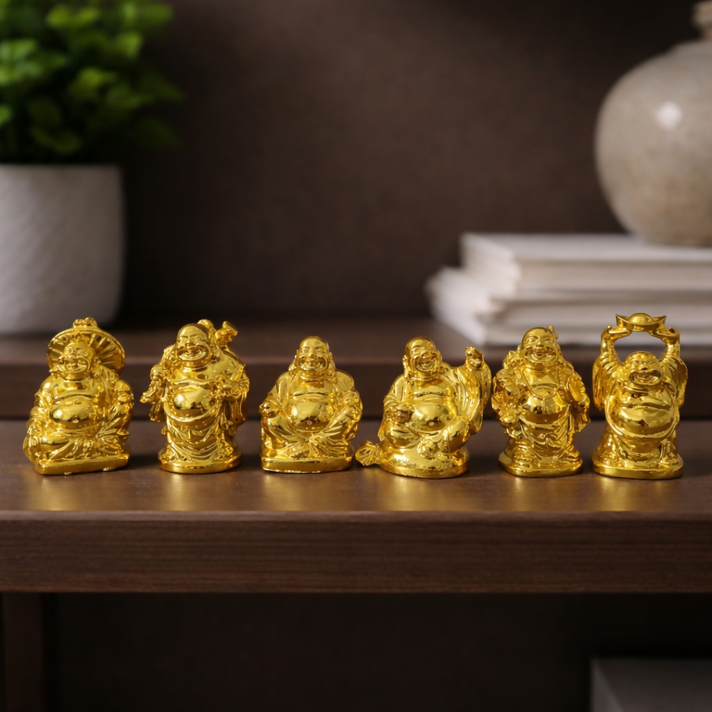 Laughing Buddha Idol Set of 6 for Home Decor, Office Desk & Gifting