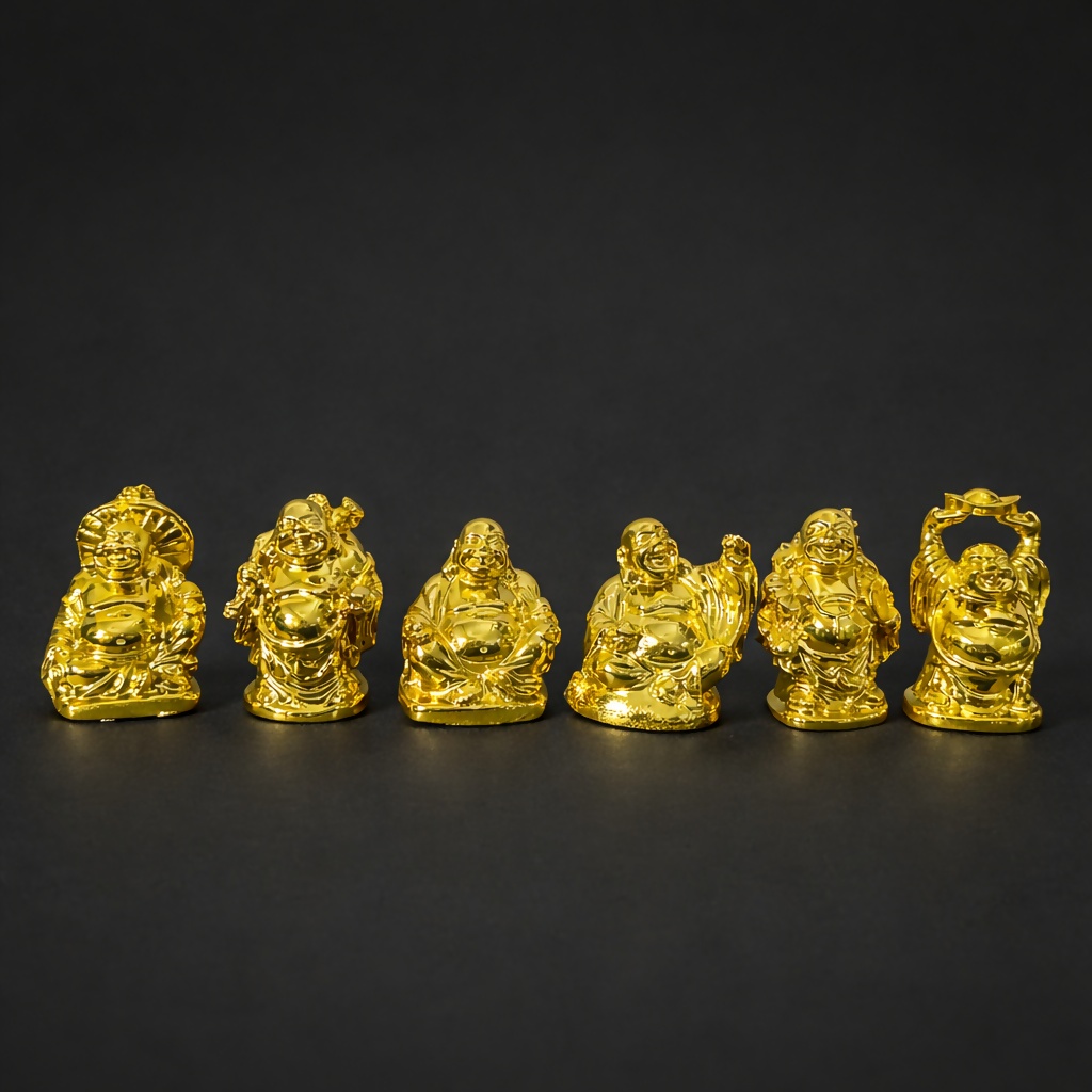 Set of 6 Idols: Multiple poses symbolizing joy, prosperity, and good fortune