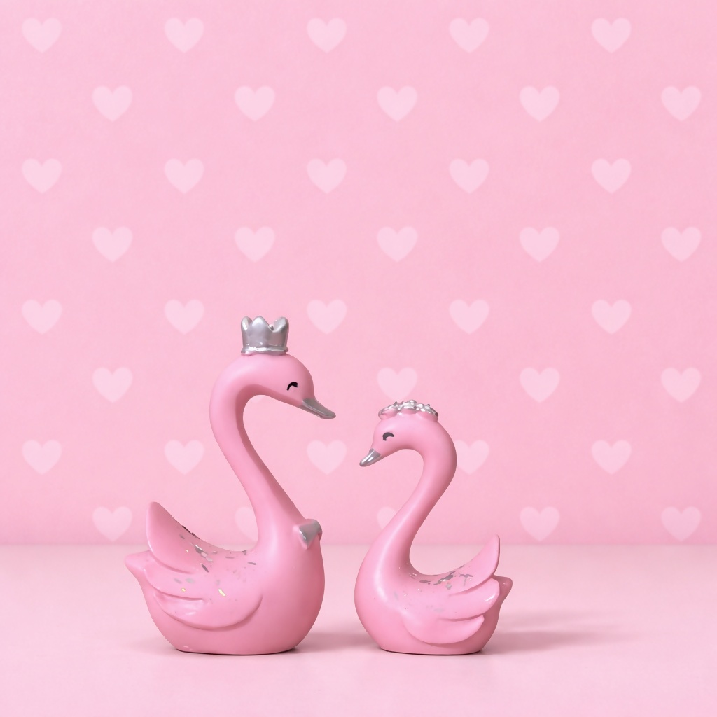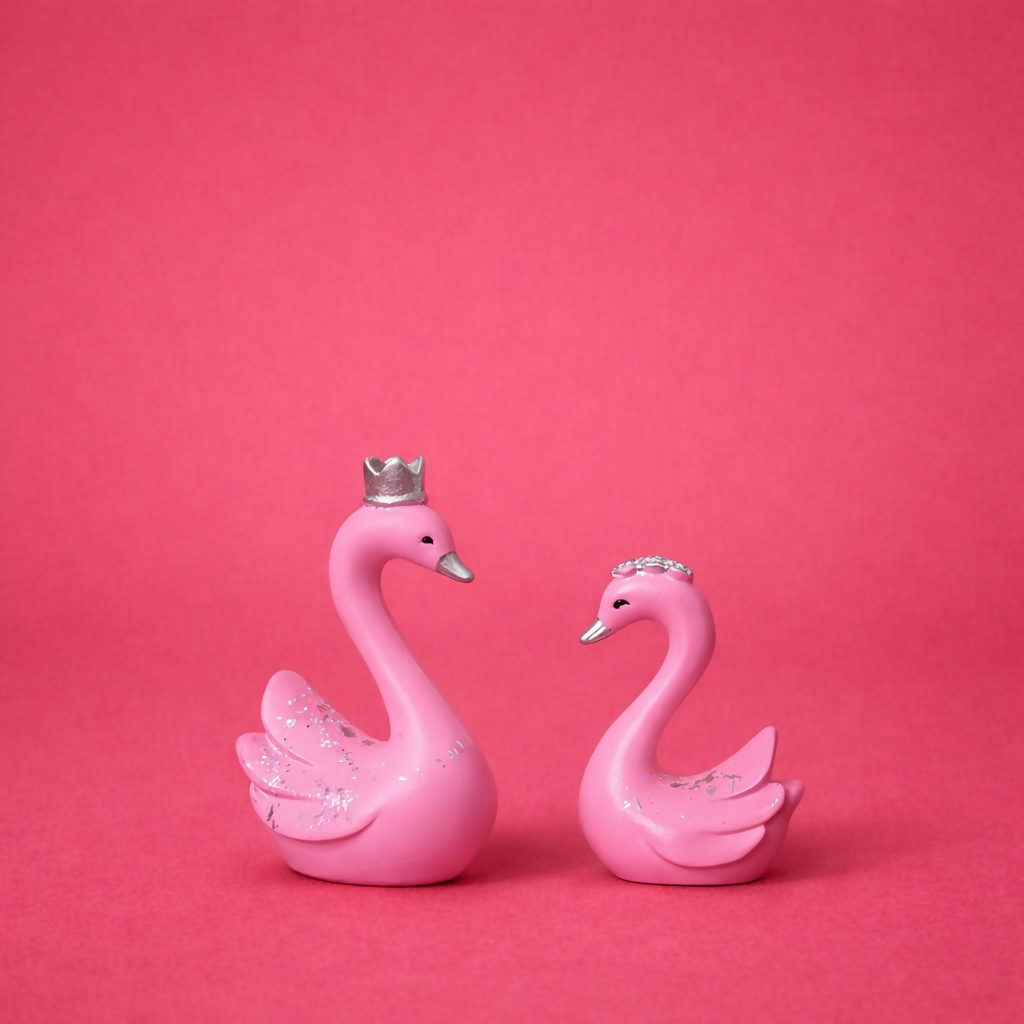 Add a touch of elegance and love to your space with this adorable Royal Pink Swan Couple Showpiece. Designed in soft pink with silver crown details, this pair symbolizes love, togetherness and harmony — perfect for bedrooms, living rooms, shelves, or gifting. A beautiful décor piece for anniversaries, weddings, Valentine’s Day or as a sweet surprise for someone special.