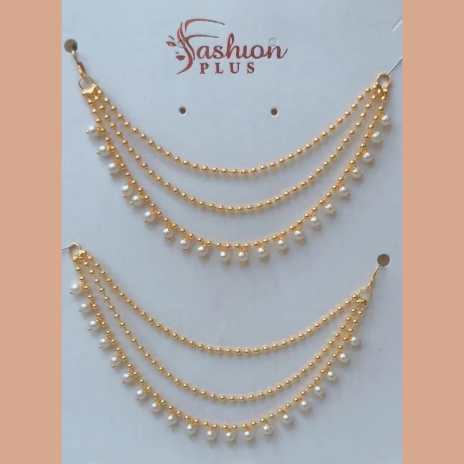 Embellishments: The bottom-most layer of each chain is adorned with small, dainty white seed pearls (moti) that dangle like droplets, providing a classic and feminine touch.