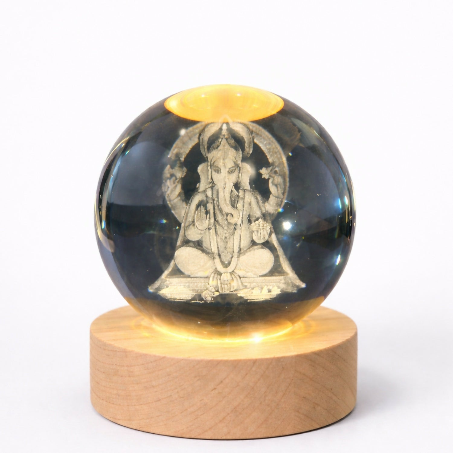 3D Laser Engraved Ganesh Design – Finely crafted crystal ball with detailed engraving creates a beautiful spiritual visual effect when illuminated.