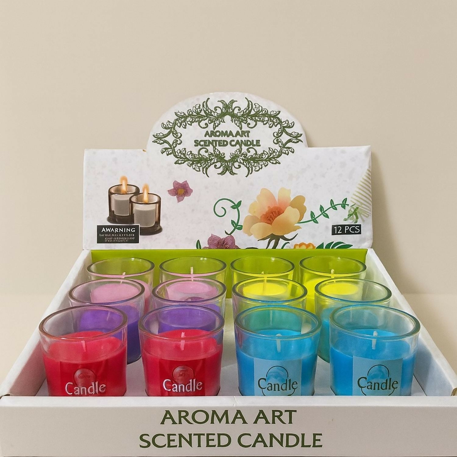Aroma Art Scented Glass Candles – Set of 12 Multicolor Aromatherapy Candles with Fragrance – Decorative Wax Candles for Home Décor, Meditation, Spa, Parties & Gifting