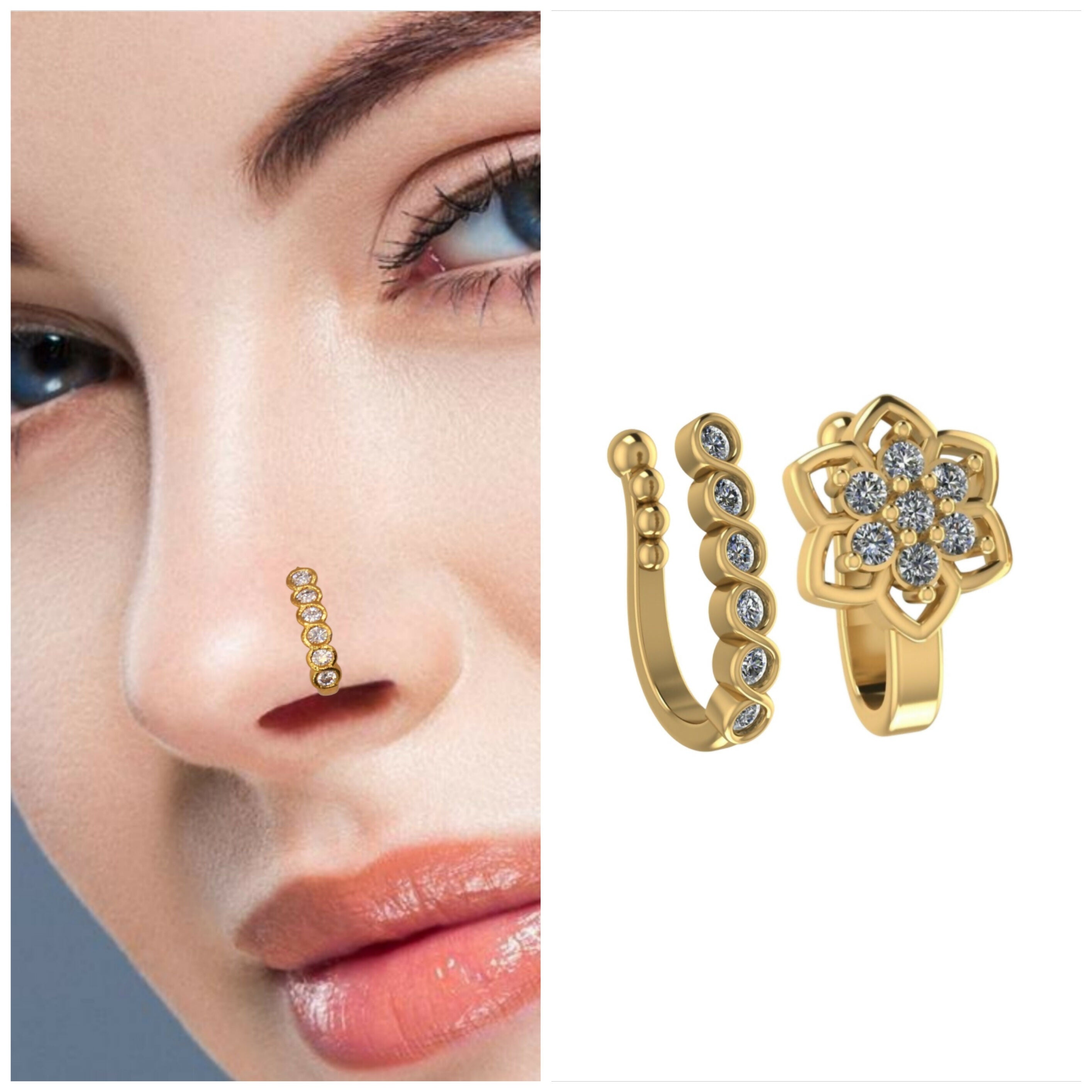 Instantly elevate your look with this versatile and pain-free collection of Clip-On Nose Rings and Cuffs! This set offers the elegance of a traditional or modern piercing without the commitment of a permanent hole. Perfect for all ages, genders, and especially for temporary festive, wedding, or party wear.