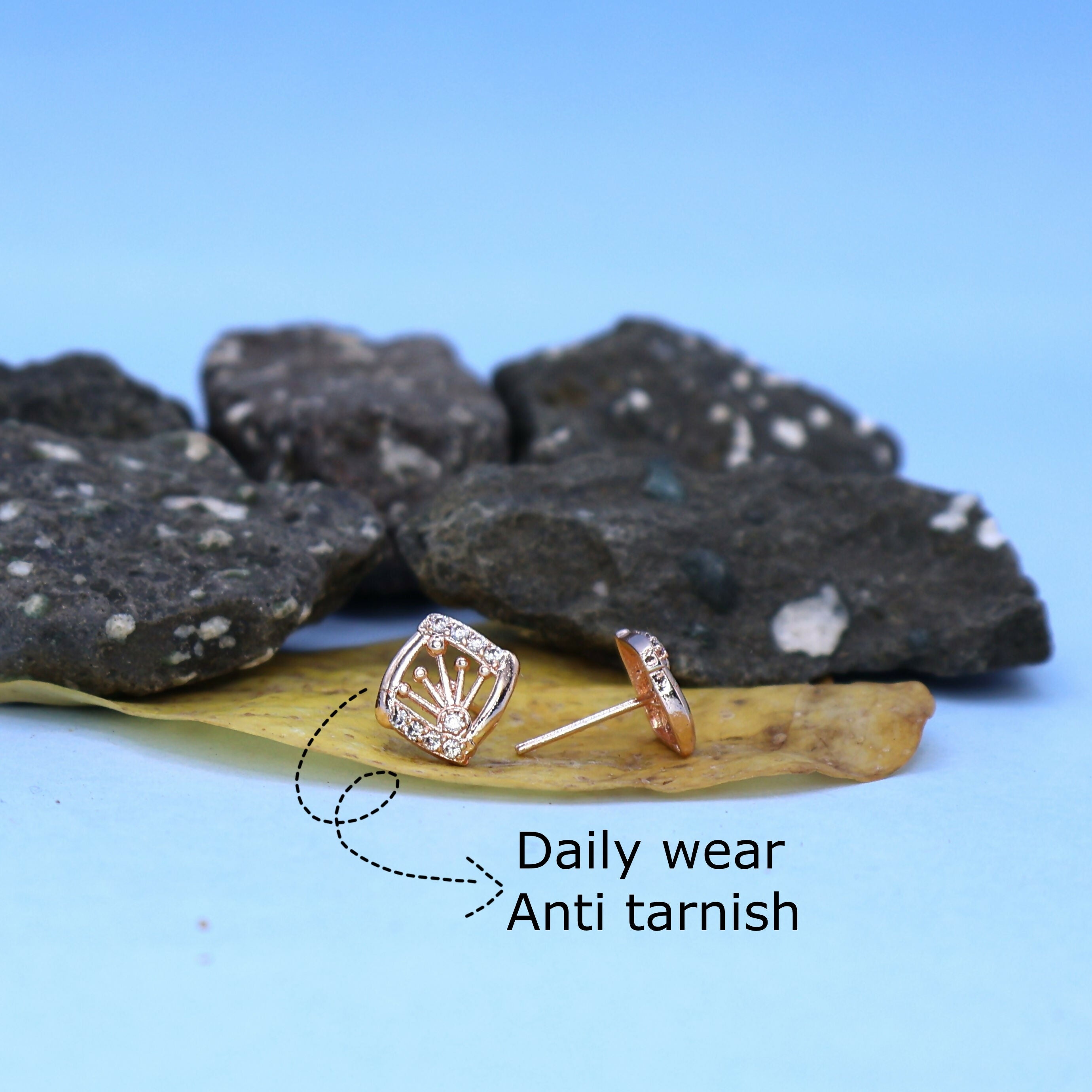 Rose Gold Plated Crown Stud Earrings for Daily Wear for women and girls