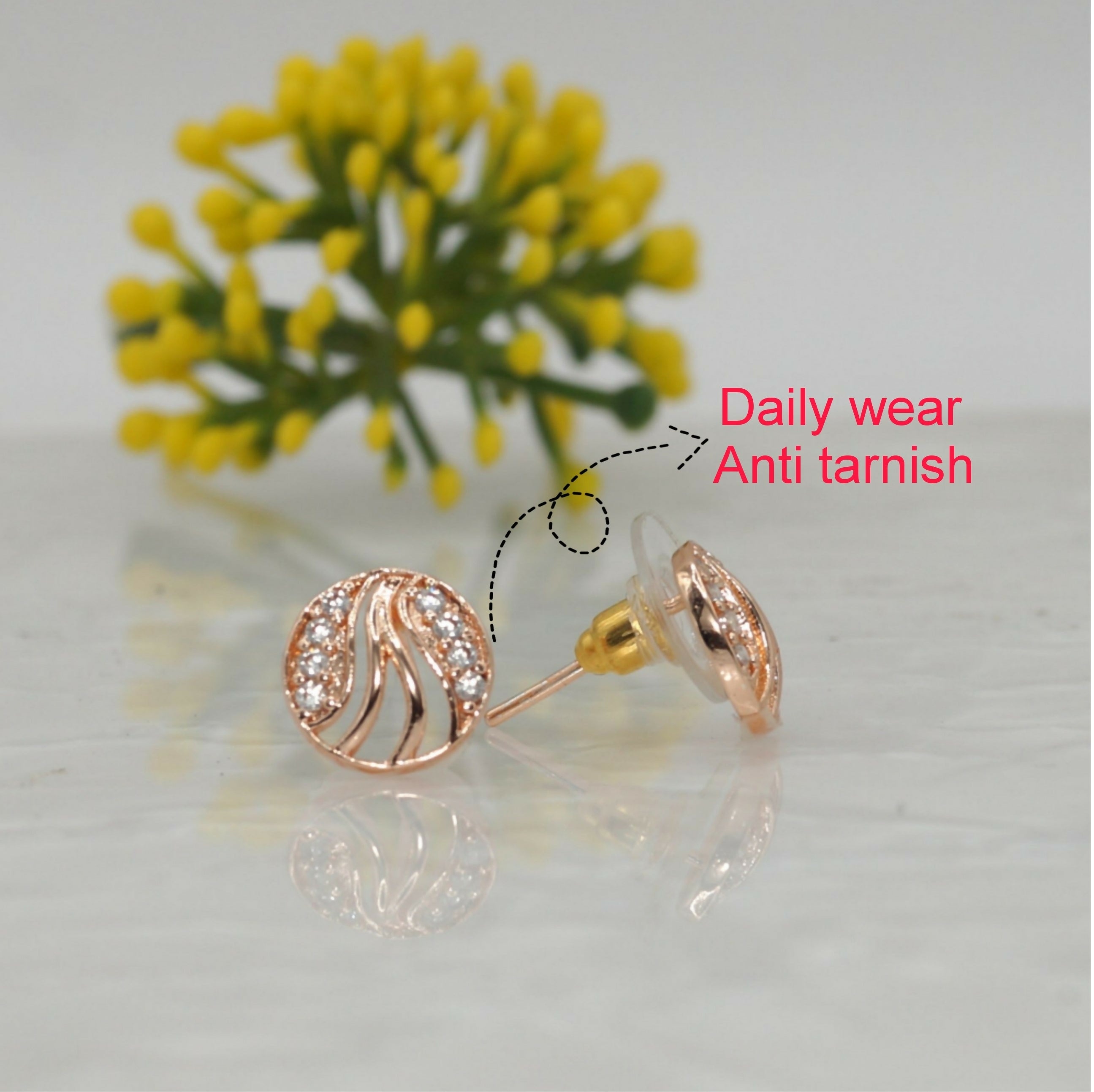 Rose Gold Swirl Stud Earrings with AD Diamonds | Elegant & Modern for women and girls