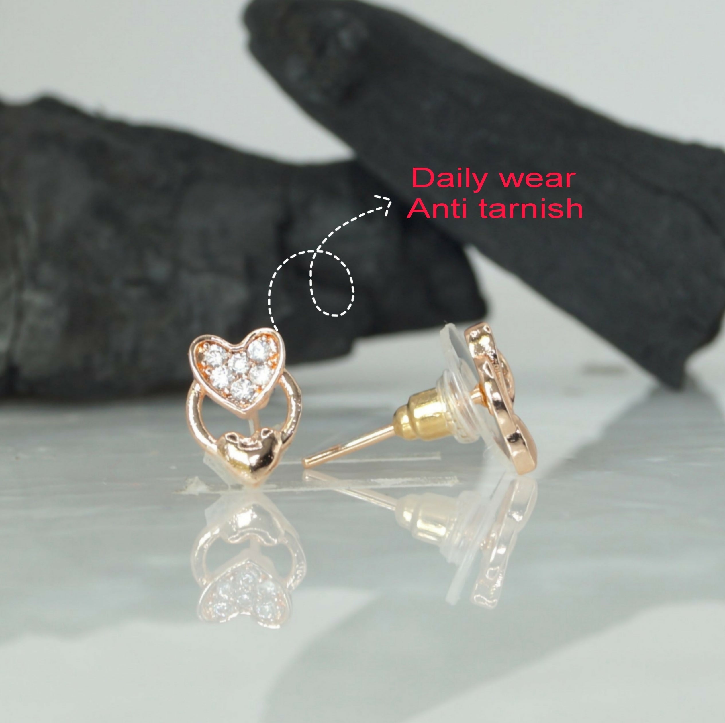 Rose Gold Plated Heart Stud Earrings with for women and girls
