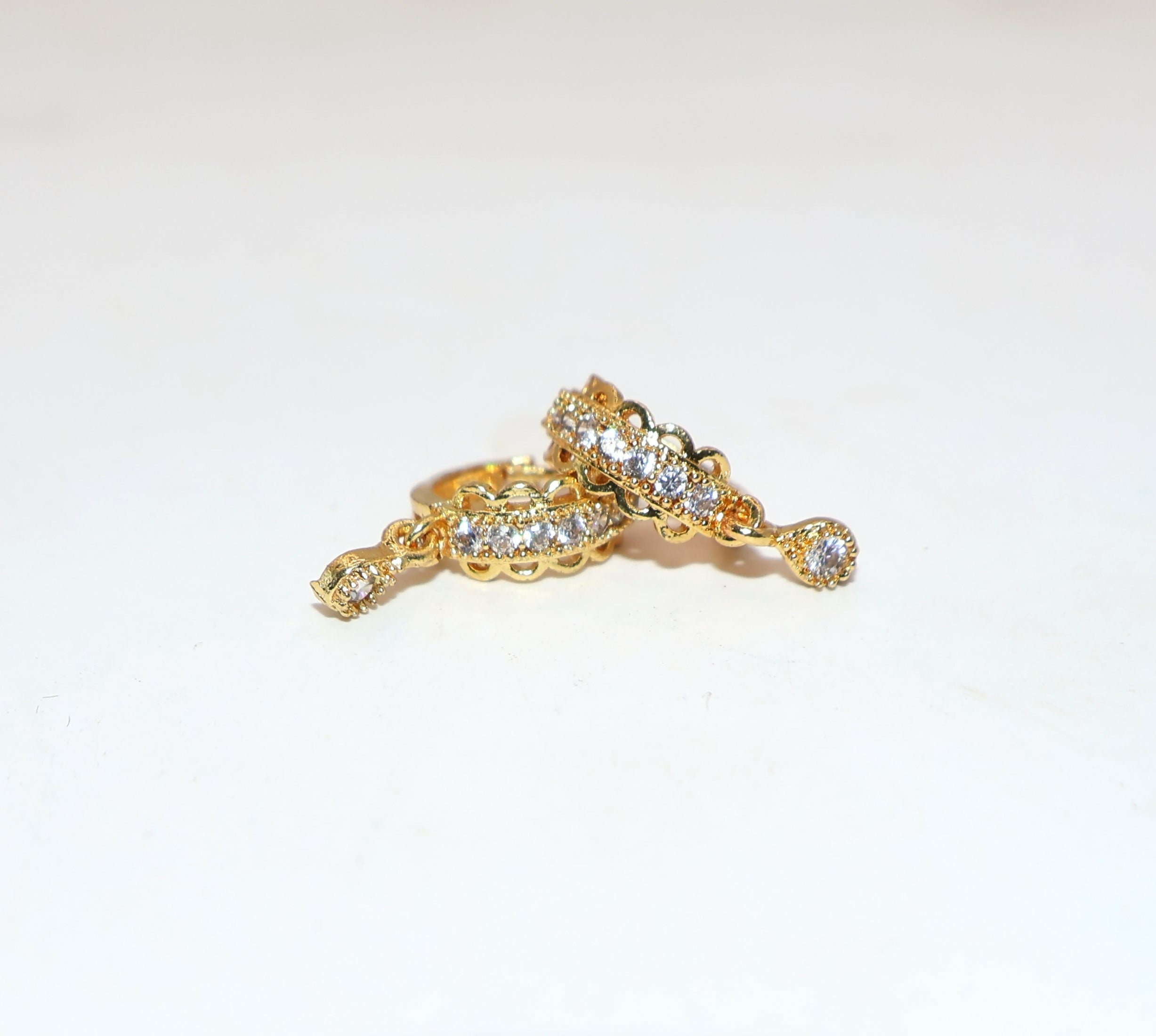 Design: The main hoop is intricately set with a continuous row of brilliant Cubic Zirconia (CZ) stones, offering maximum sparkle.