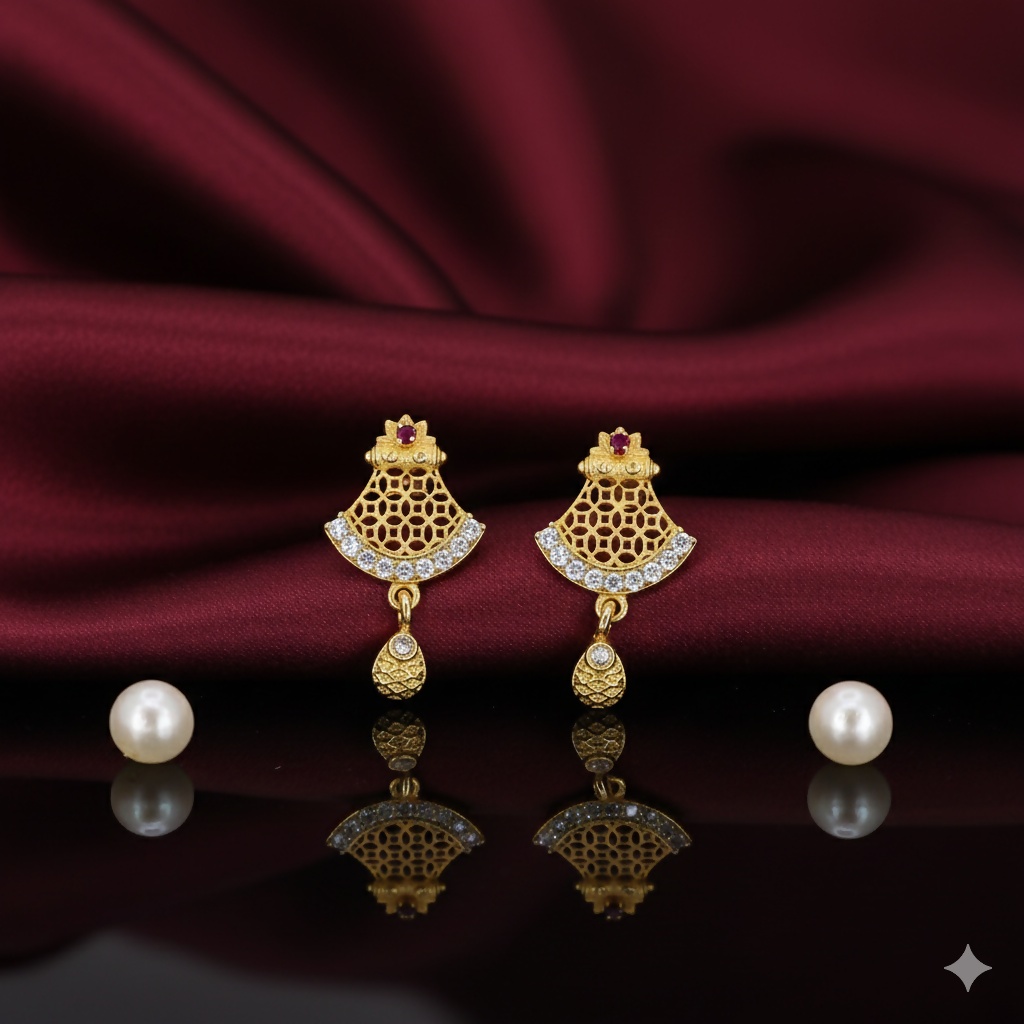 ✨ Regal Jali Work Gold Plated CZ Drop Stud Earrings