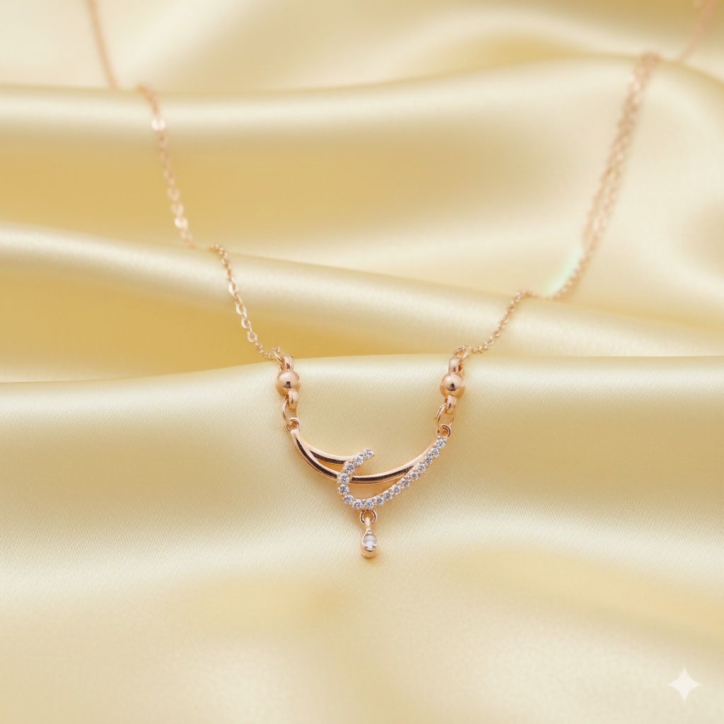Rose Gold AD Crescent Moon Necklace Pendant For women and girls