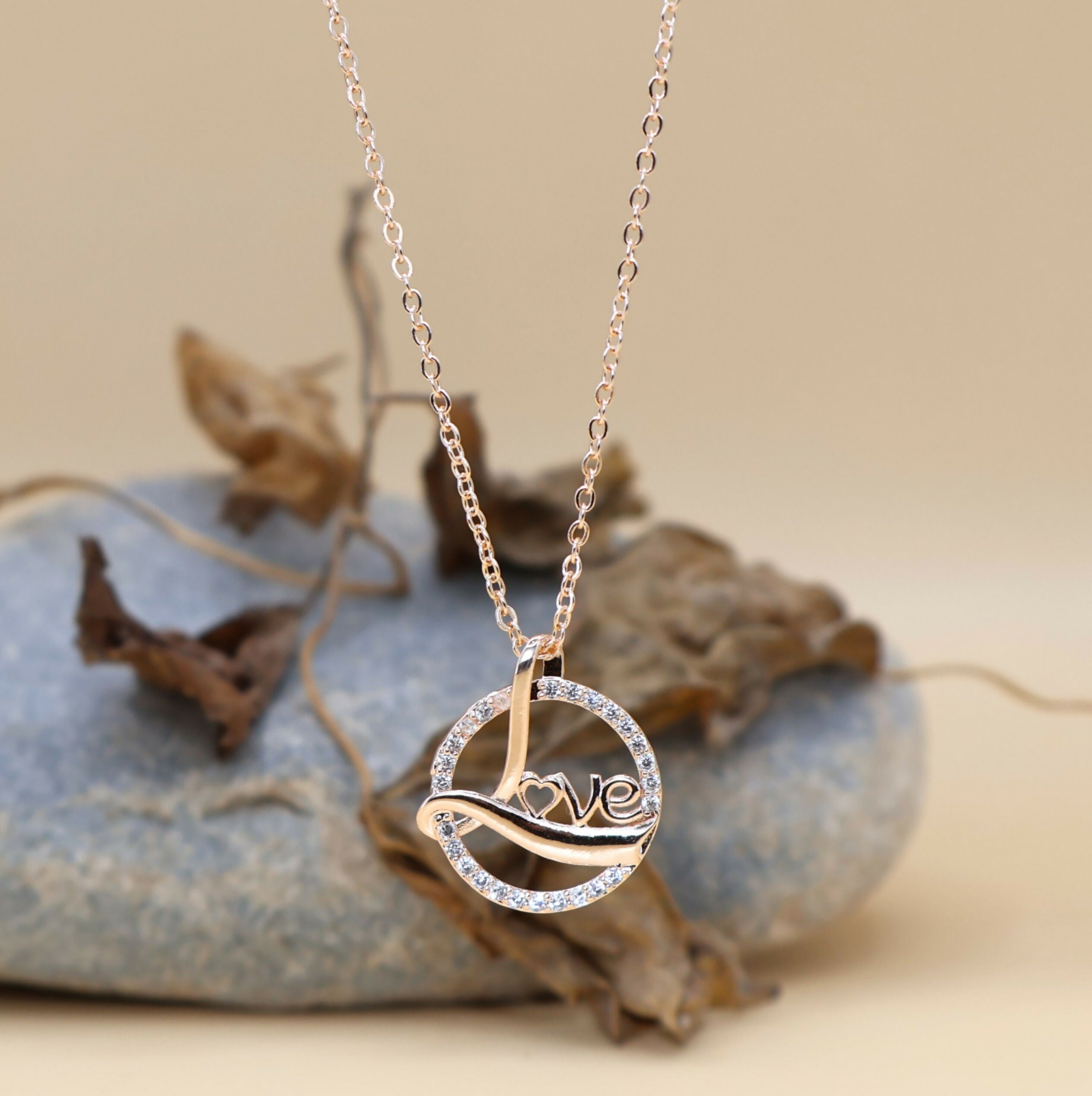 ✨ Dazzling Rose Gold "Love" Circle Necklace