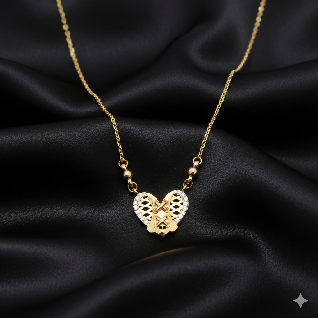 Intricate Design: The central pendant features a unique heart shape with an elegant, crisscross laced pattern, giving it a classic, romantic appeal.