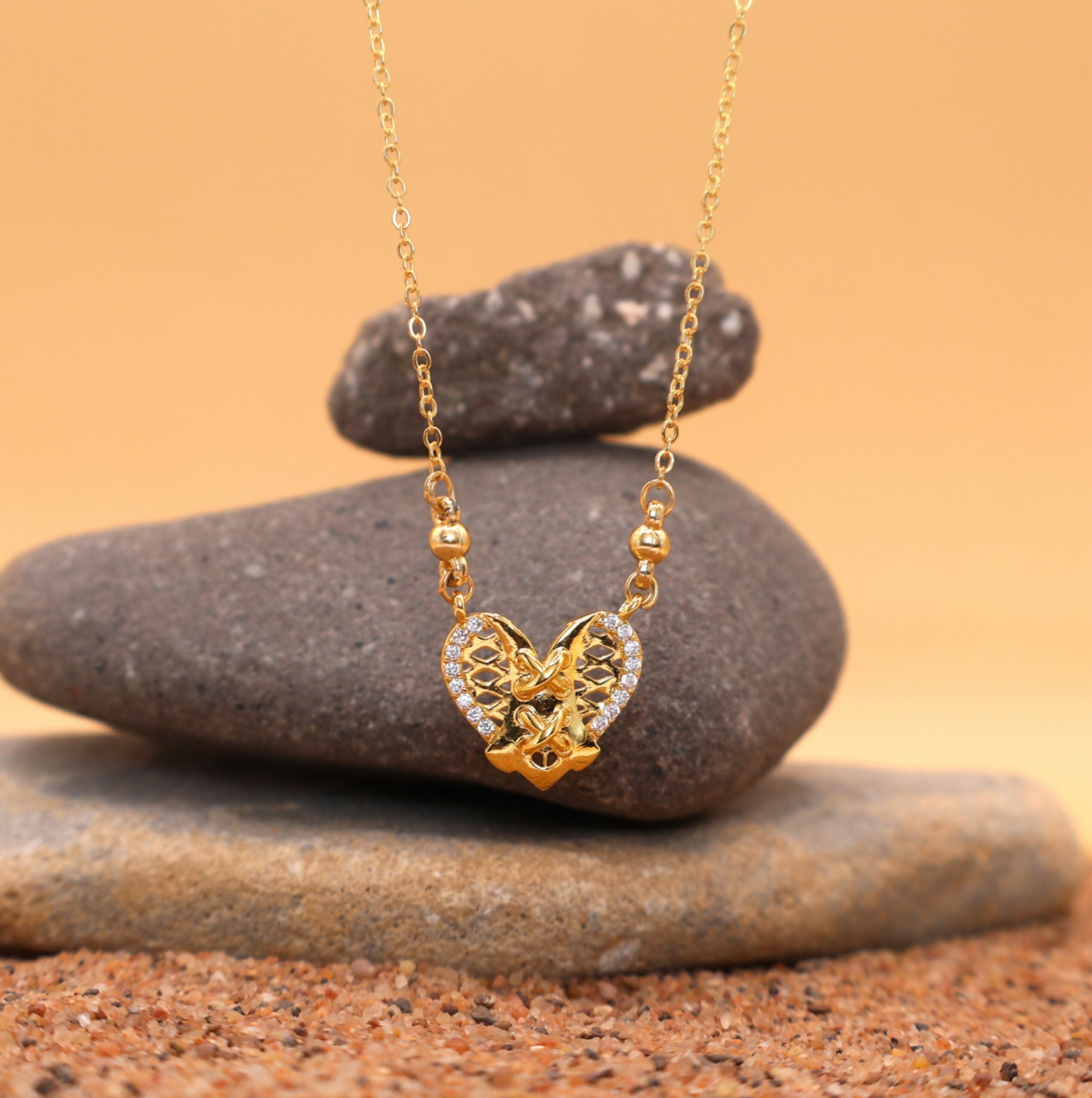 Premium Finish: Crafted in a warm gold tone, the pendant hangs from a delicate, matching chain featuring small gold beads for an extra element of detail.