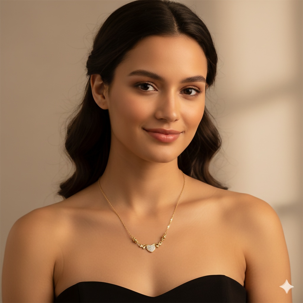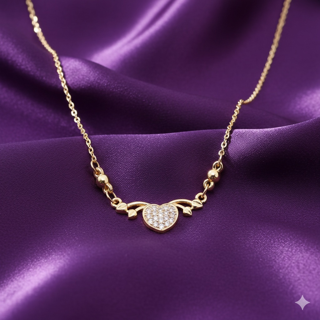 Dainty Gold Heart Necklace with AD Love Pendant For women and girls