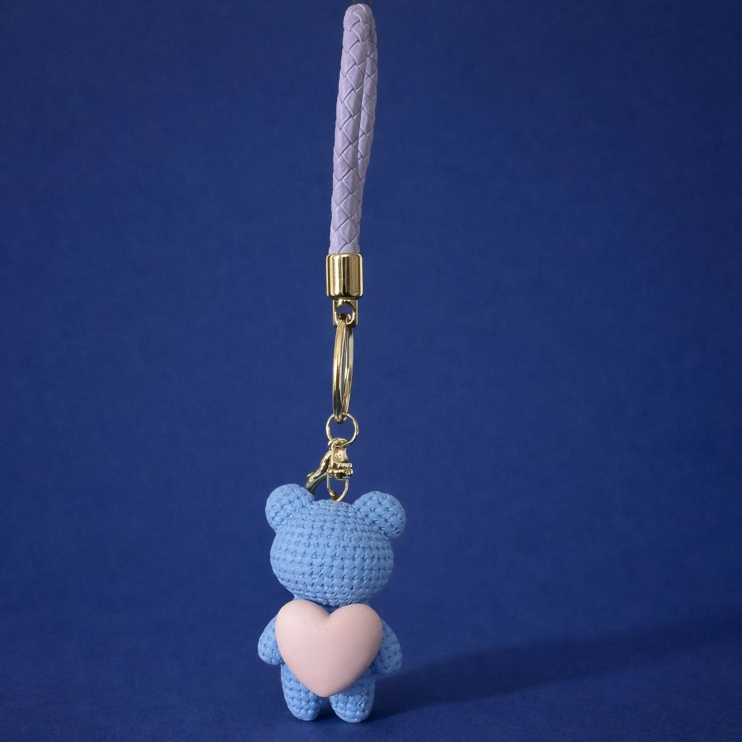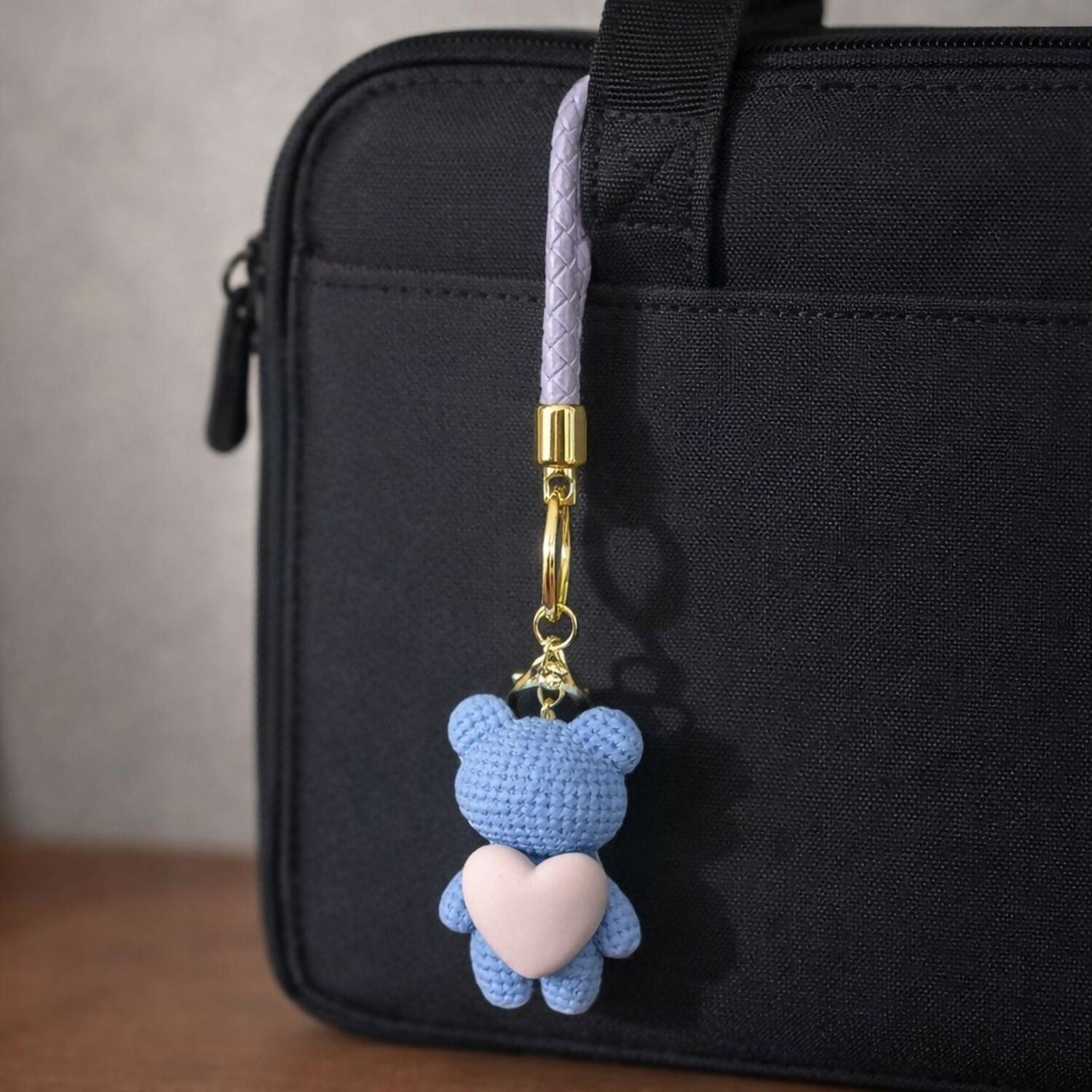 Cute Blue Teddy Bear Keychain with Heart | Bag, Purse & Key Holder Charm