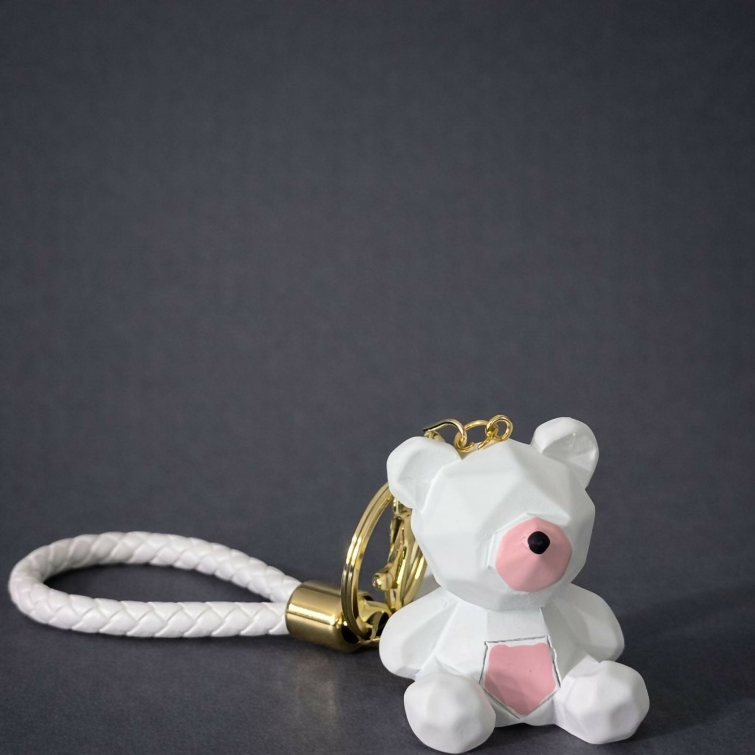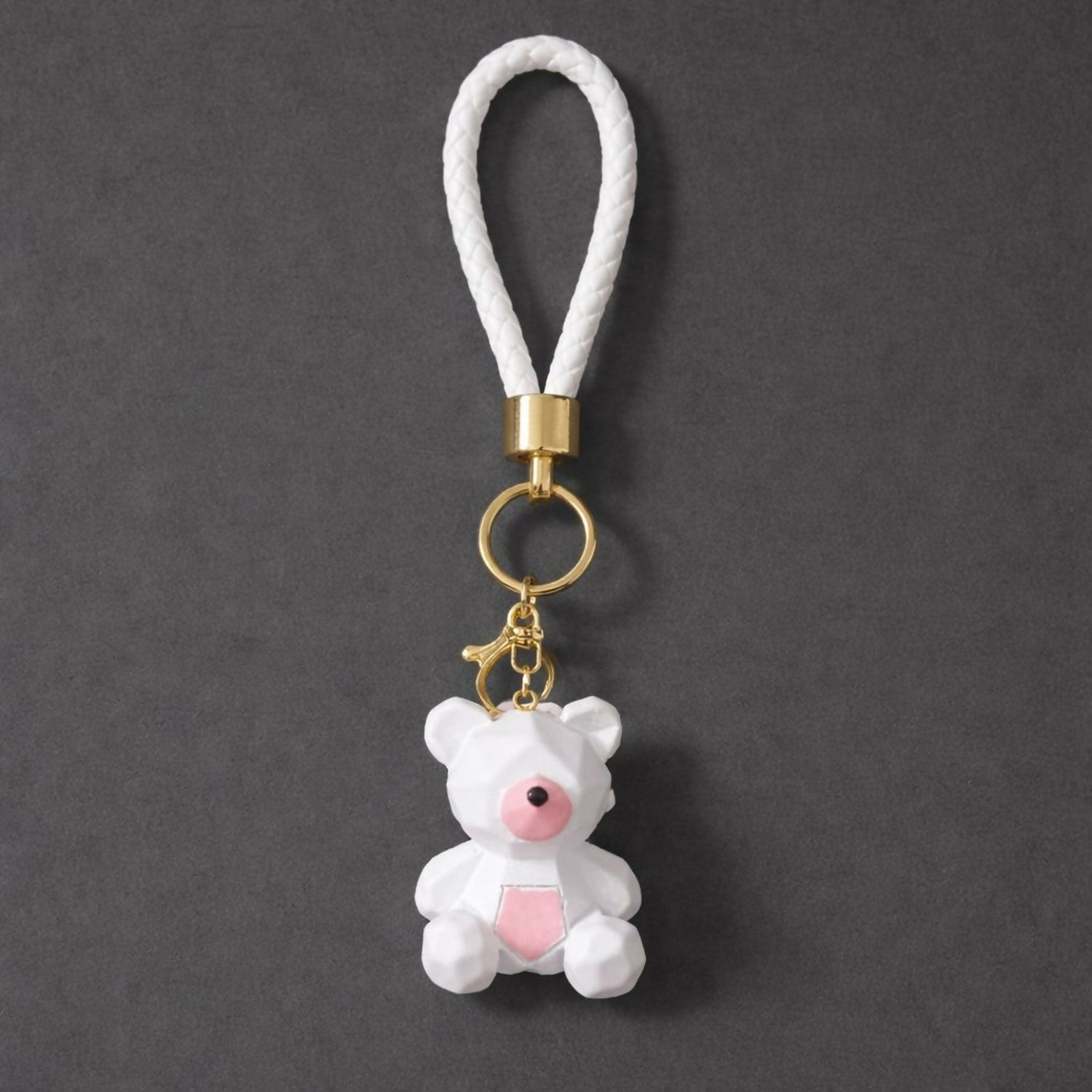 Add a touch of love and elegance to your daily essentials with this adorable white teddy bear keychain featuring a soft pink heart. Designed with a modern faceted teddy look, premium braided strap, and strong metal ring, this keychain is perfect for car keys, handbags, purses, backpacks, or wallets. Lightweight yet durable, it keeps your keys secure while adding a cute, stylish accent. Ideal for everyday use or gifting on birthdays, anniversaries, Valentine’s Day, or special occasions.