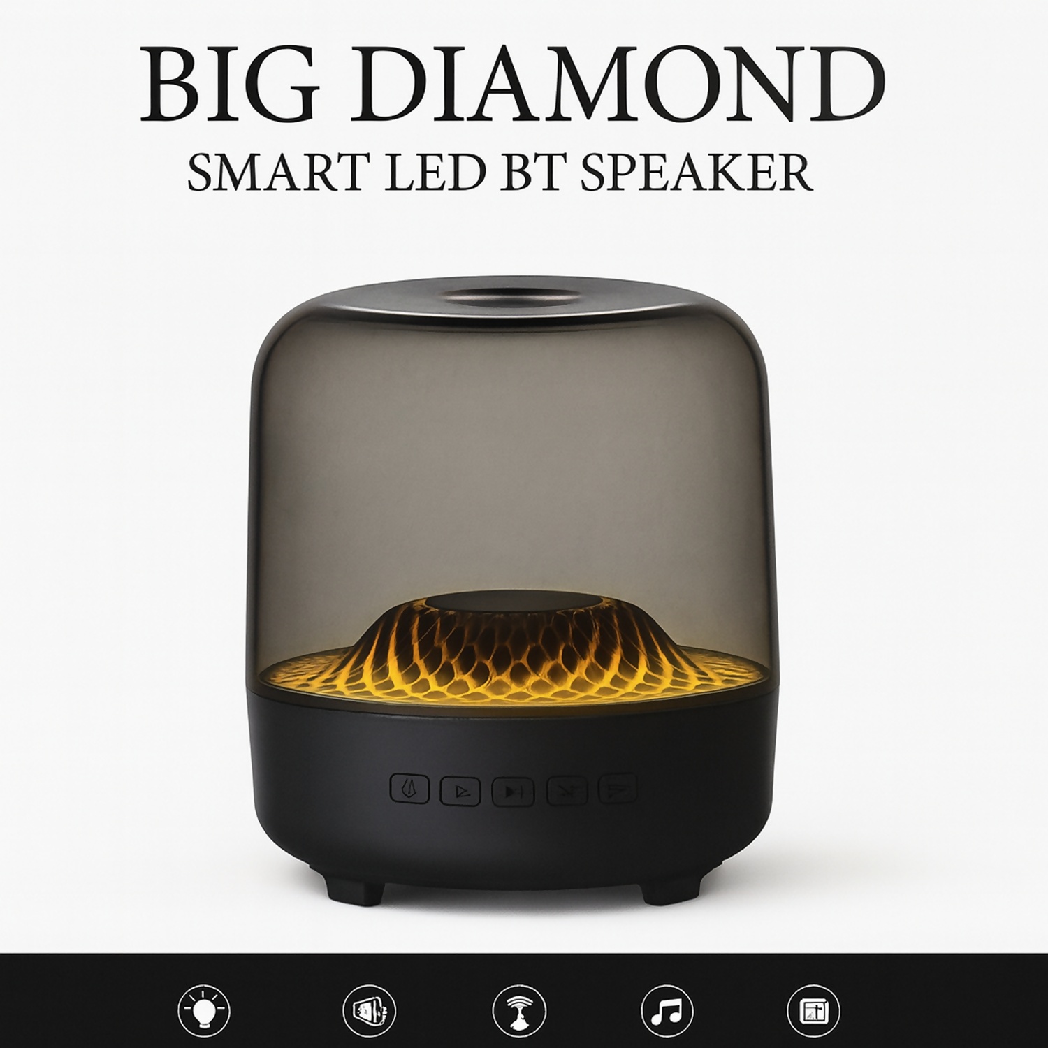 Upgrade your space with the Big Diamond Smart LED Bluetooth Speaker, a stylish combination of premium sound and ambient RGB lighting. Designed with a crystal-inspired diamond effect, this speaker creates a stunning light pattern while delivering clear audio and deep bass.