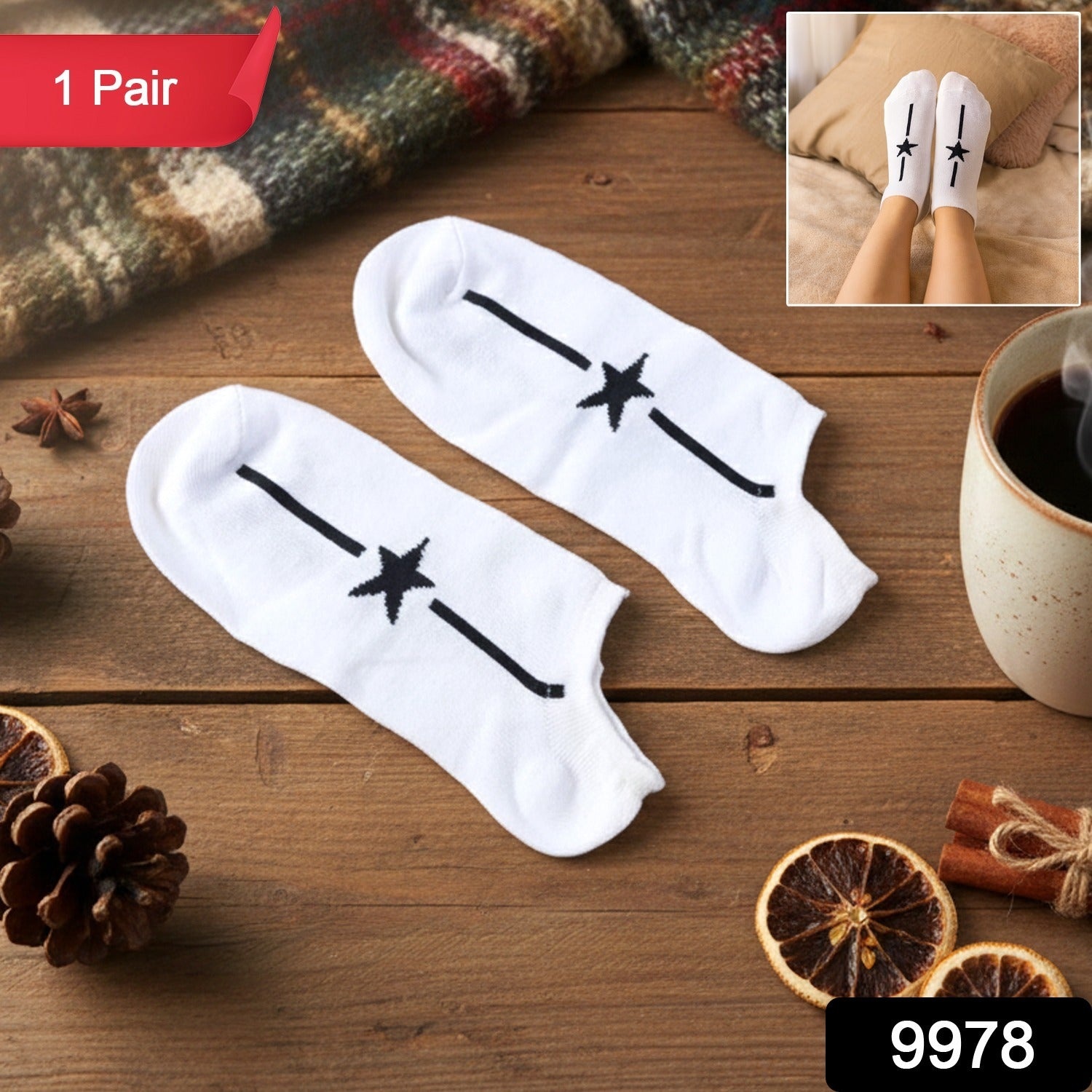 White Star Pattern Low-Cut Socks (1 Pair)