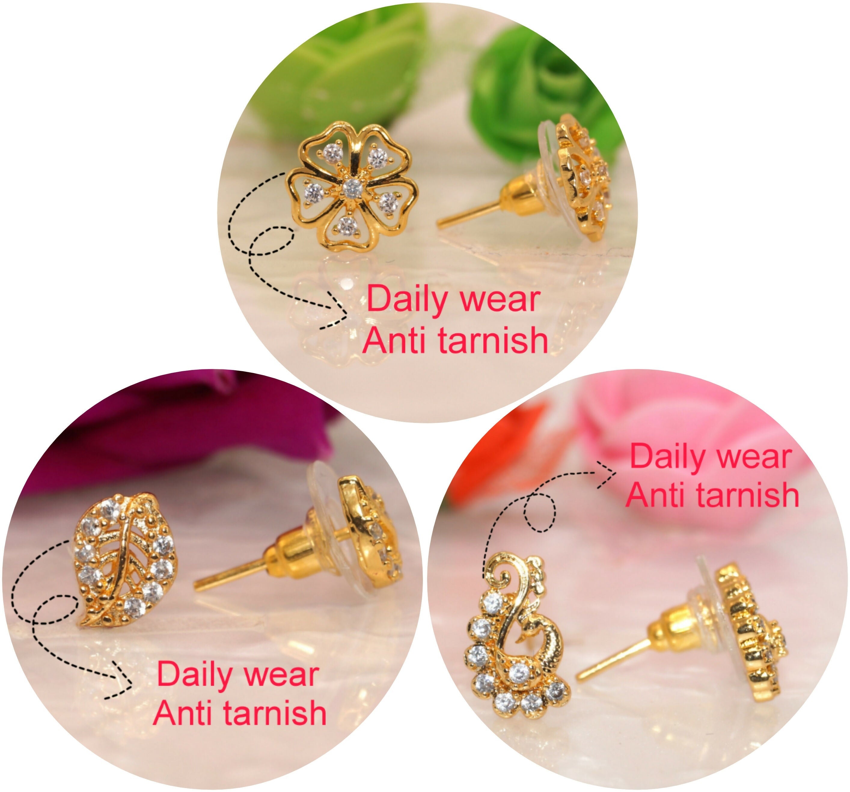 • Stylish gold studs for daily wear
