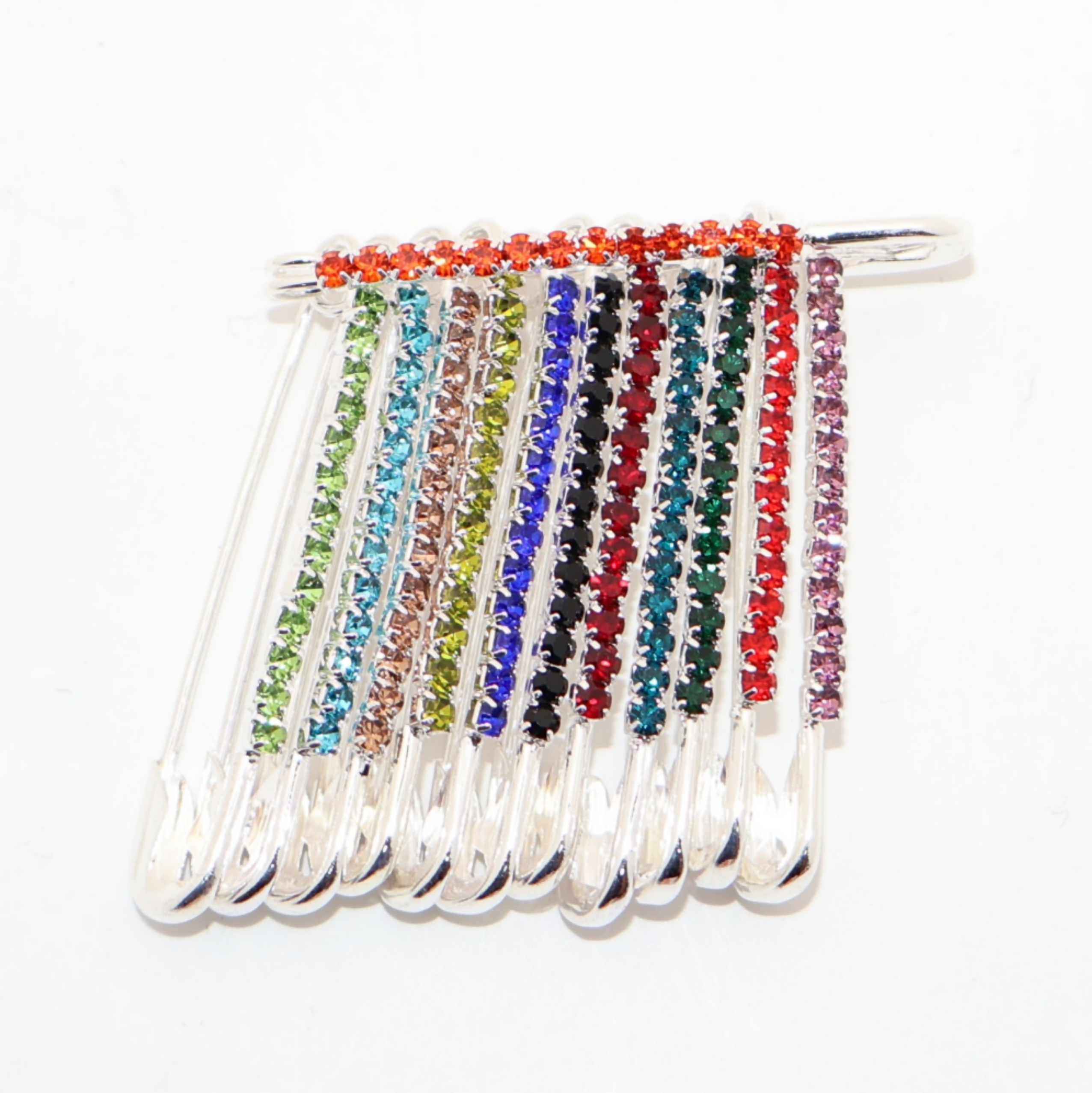 Multicolor Crystal Dangle Saree Pin Brooch - Rainbow Rhinestone Scarf Pin
